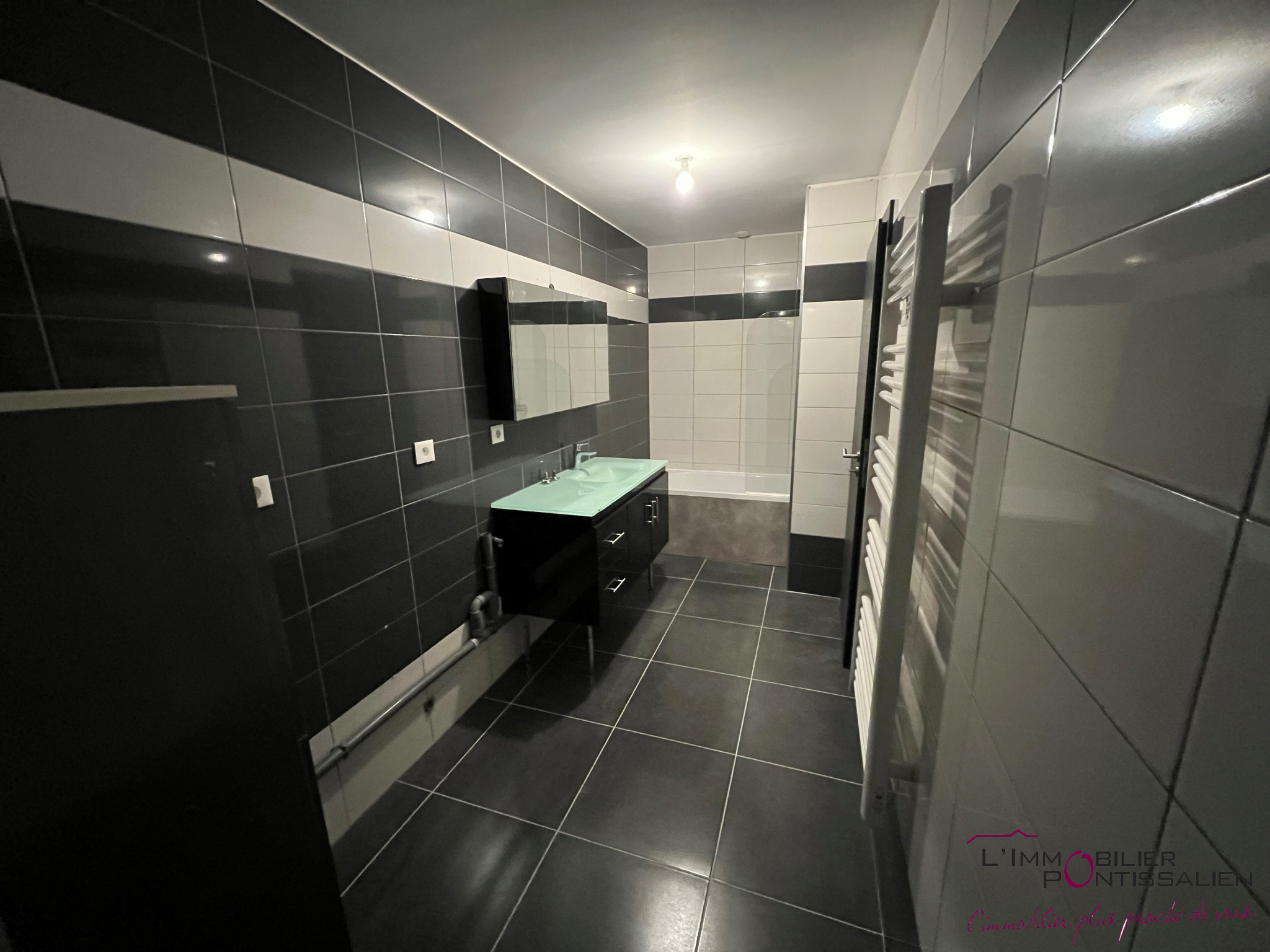 ... couloir avec placard de rangement, d'une salle d'eau avec douche et WC séparé. Un grenier privatif ...