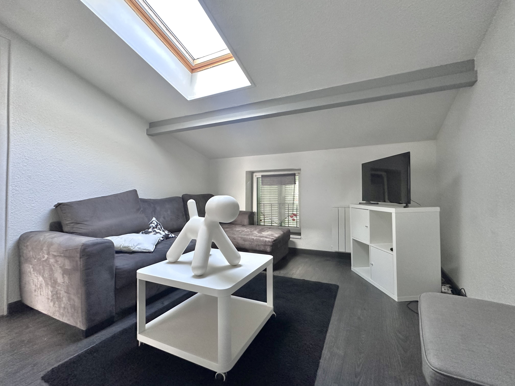 ... entrée avec placards, d'une agréable et lumineuse pièce de vie avec balcon, d'un coin cuisine équip...