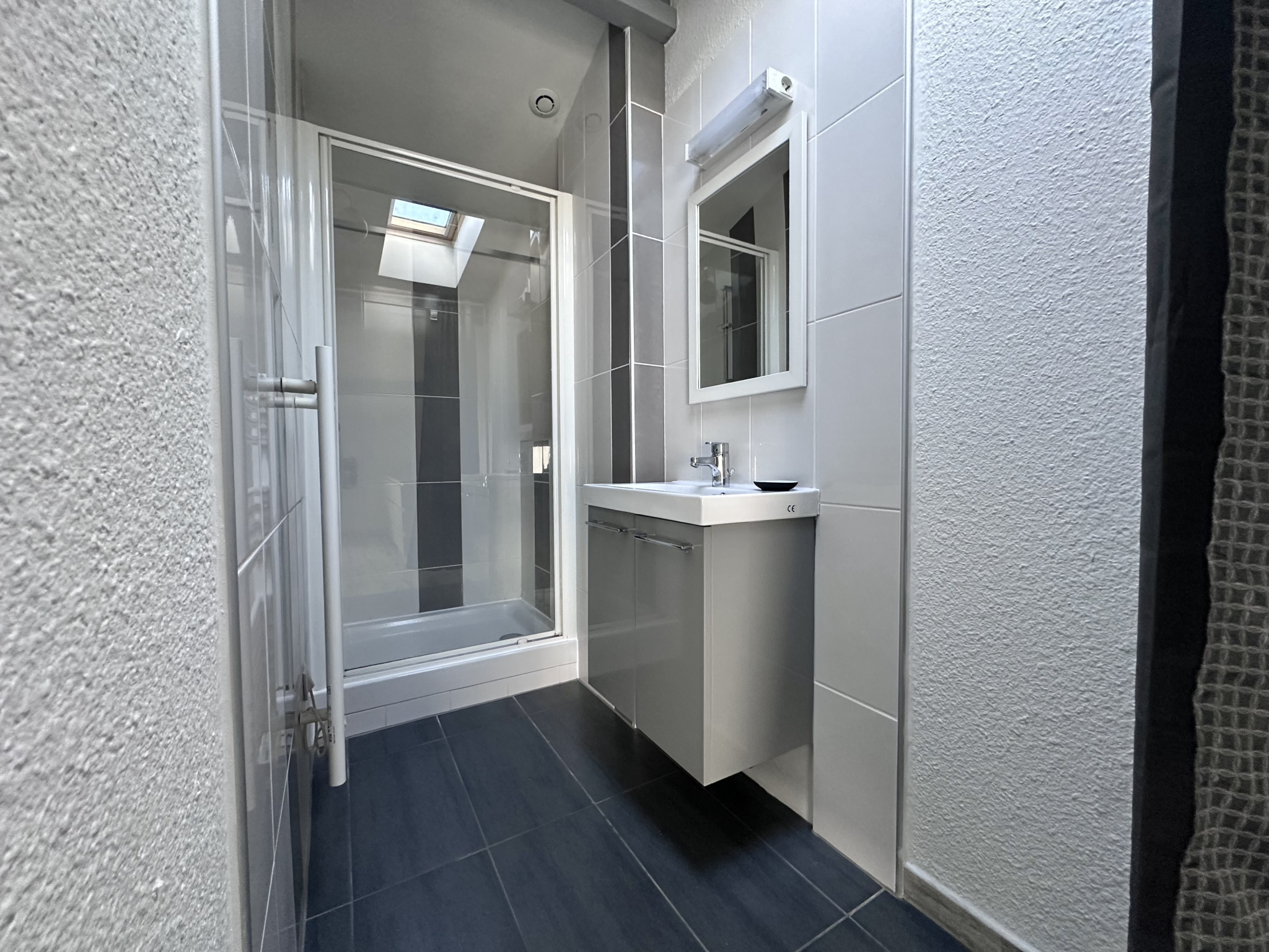 ... une chambre avec placard, une salle d'eau et un WC.