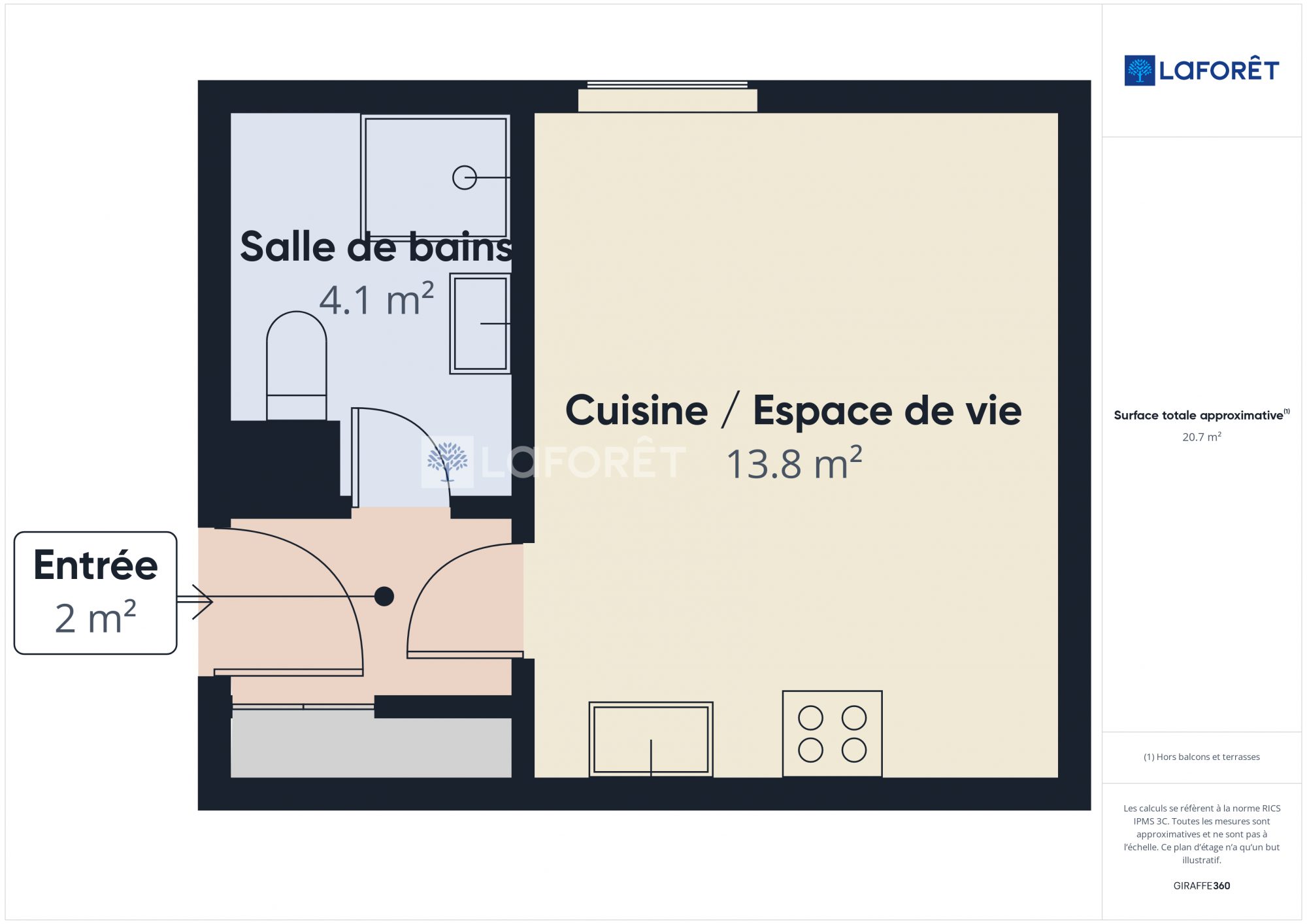 ... composent d'une cuisine équipée et aménagée (frigo/congélateur, four, micro-onde, plaques électriqu...