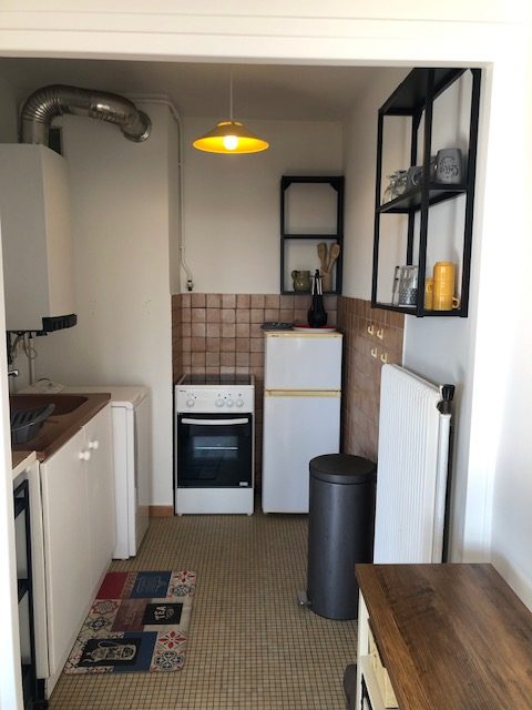 ... ce T2 meublé, rénové, lumineux au 1er étage d'un petit immeuble, composé d'une pièce principale a...