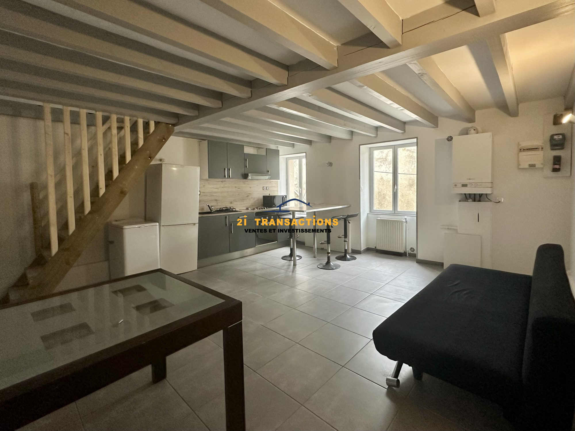 ...Il se compose d'un séjour avec cuisine aménagée, de deux chambres, d'une salle d'eau, d'un WC...