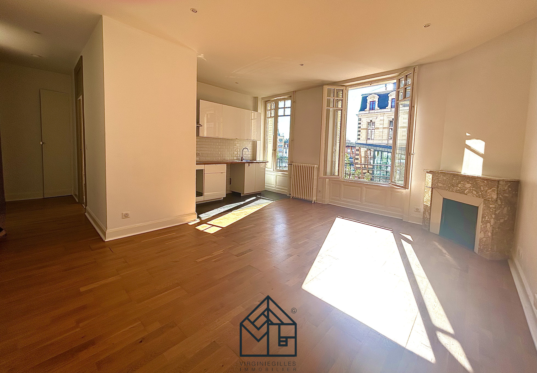 ... d'un séjour lumineux avec cuisine ouverte entièrement équipée (plaque de cuisson, hotte), d'un coin...