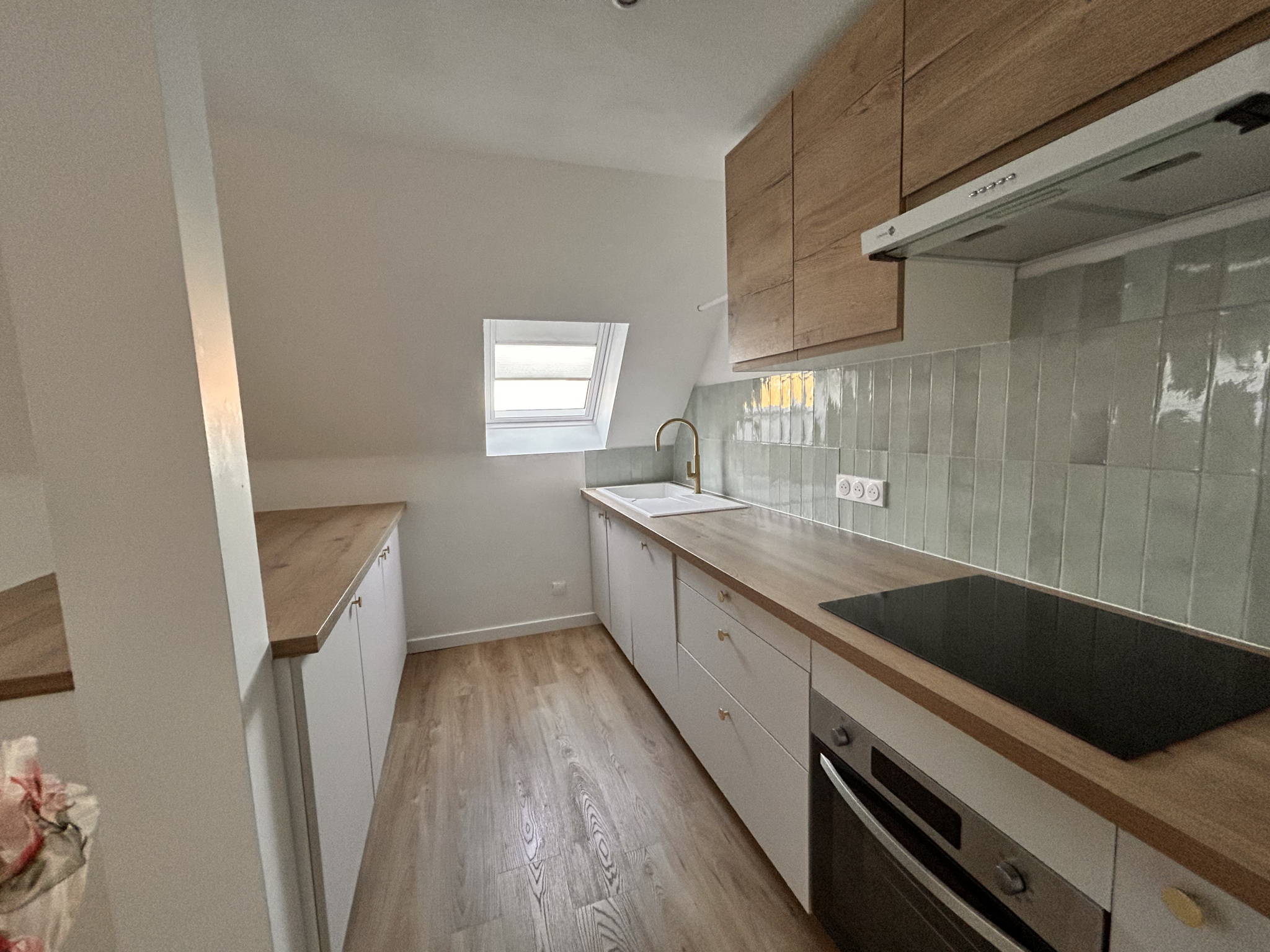 ... une entrée avec placard, une cuisine équipée ouverte sur le séjour, deux chambres, une salle de bai...