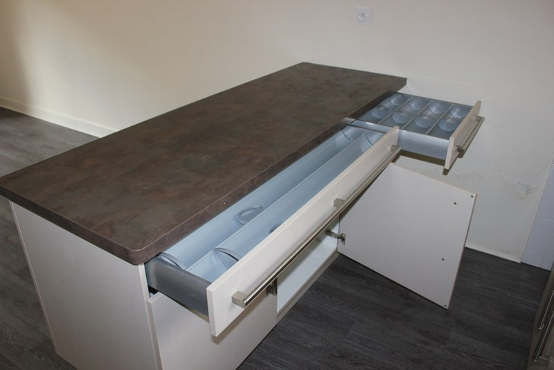 ...Une pièce de vie séparée par un bar du coin-cuisine aménagée...