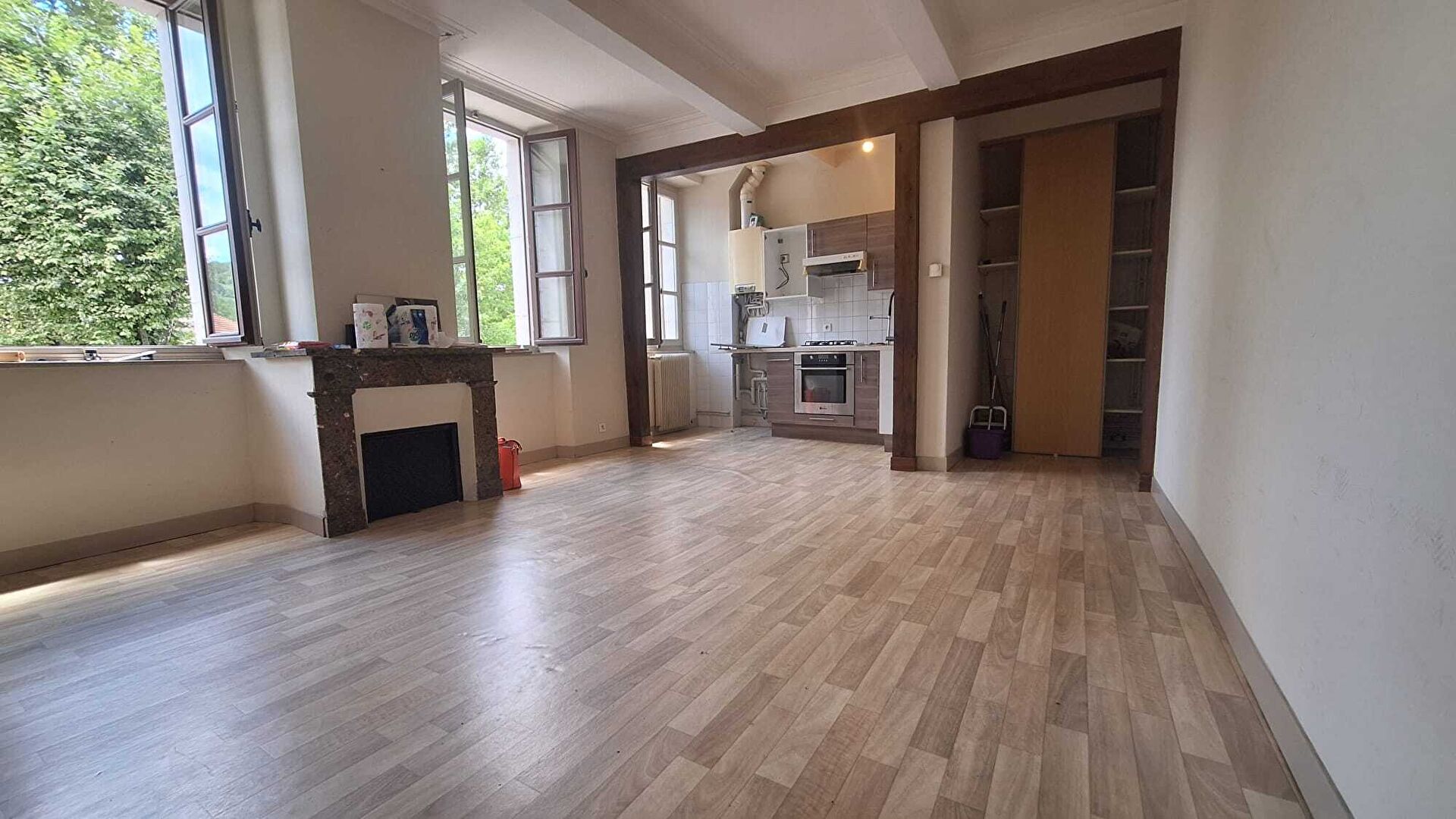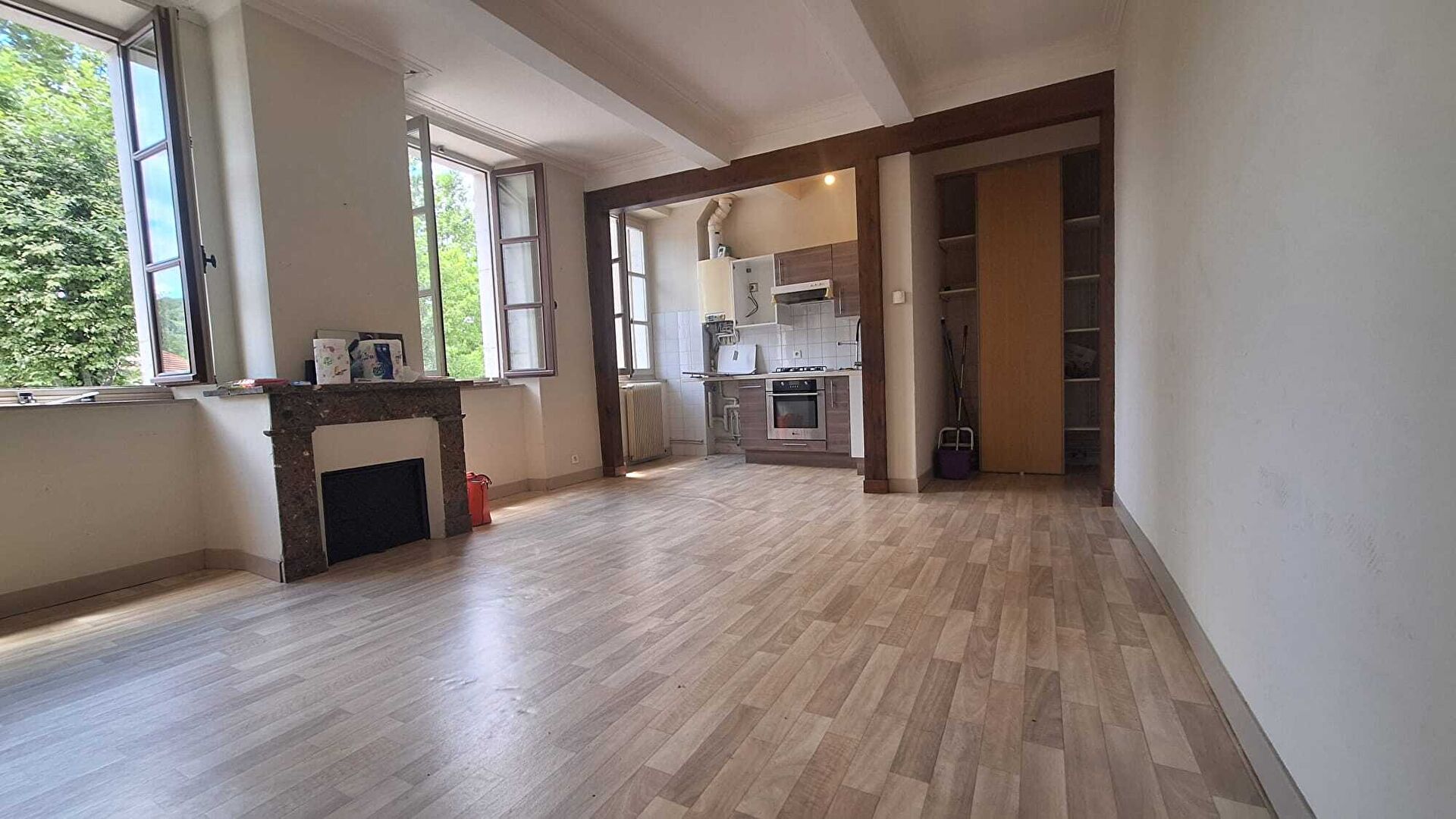 ...l'appartement se compose d'une pièce de vie lumineuse avec son coin cuisine, une chambre, une...
