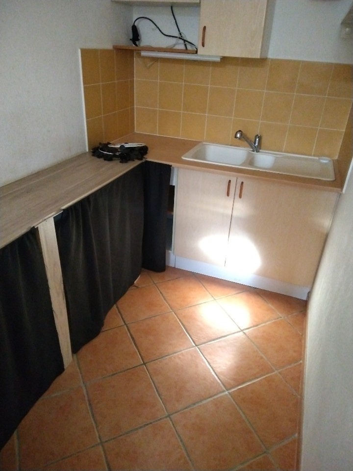 ...Composé d'une pièce de vie avec coin cuisine aménagée, salle d'eau et wc separé...