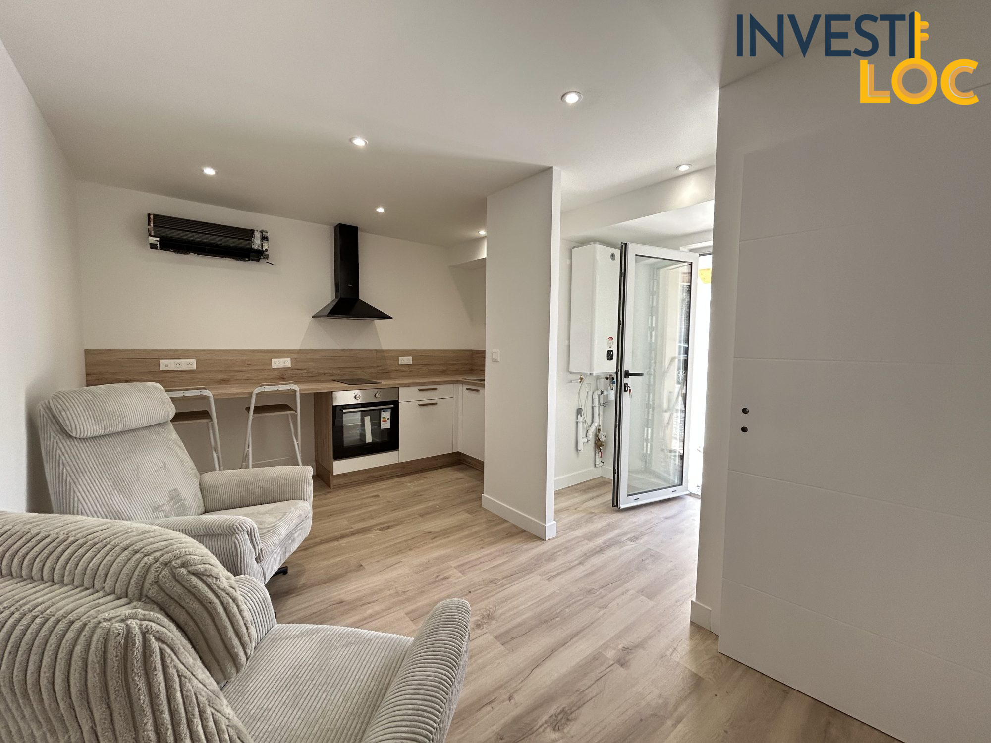 ...Appartement T2 au rez de chaussée, rénové, composé d'une pièce à vivre avec coin cuisine meublé...
