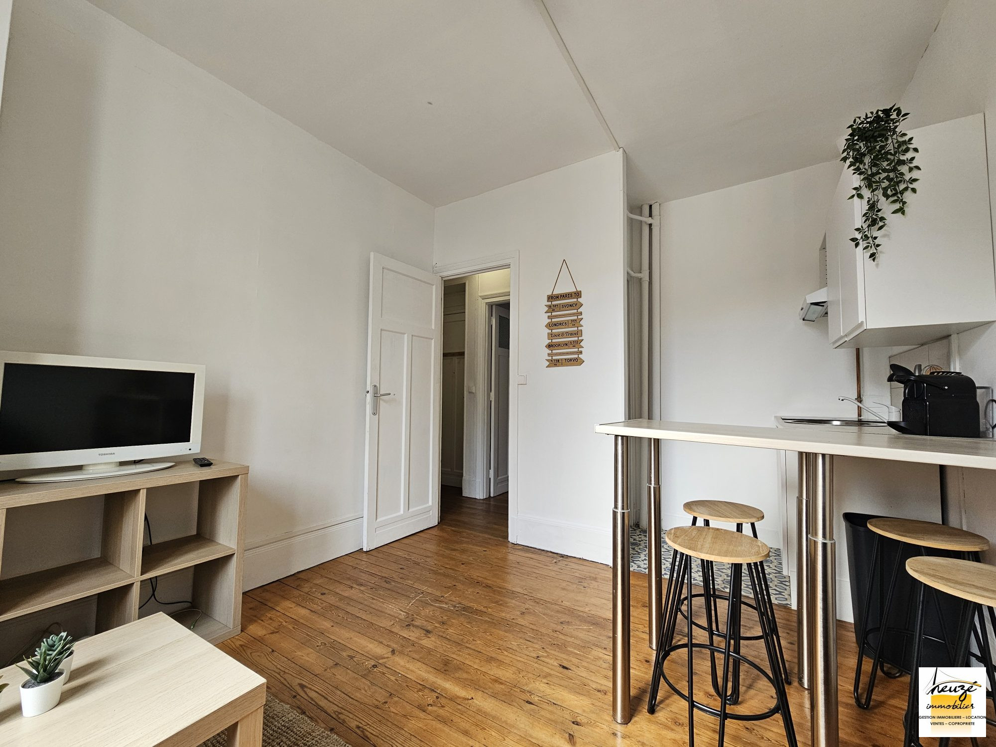 ...Ce bien offre : entrée, séjour exposé SUD avec coin cuisine aménagée et équipé, grande chambre...