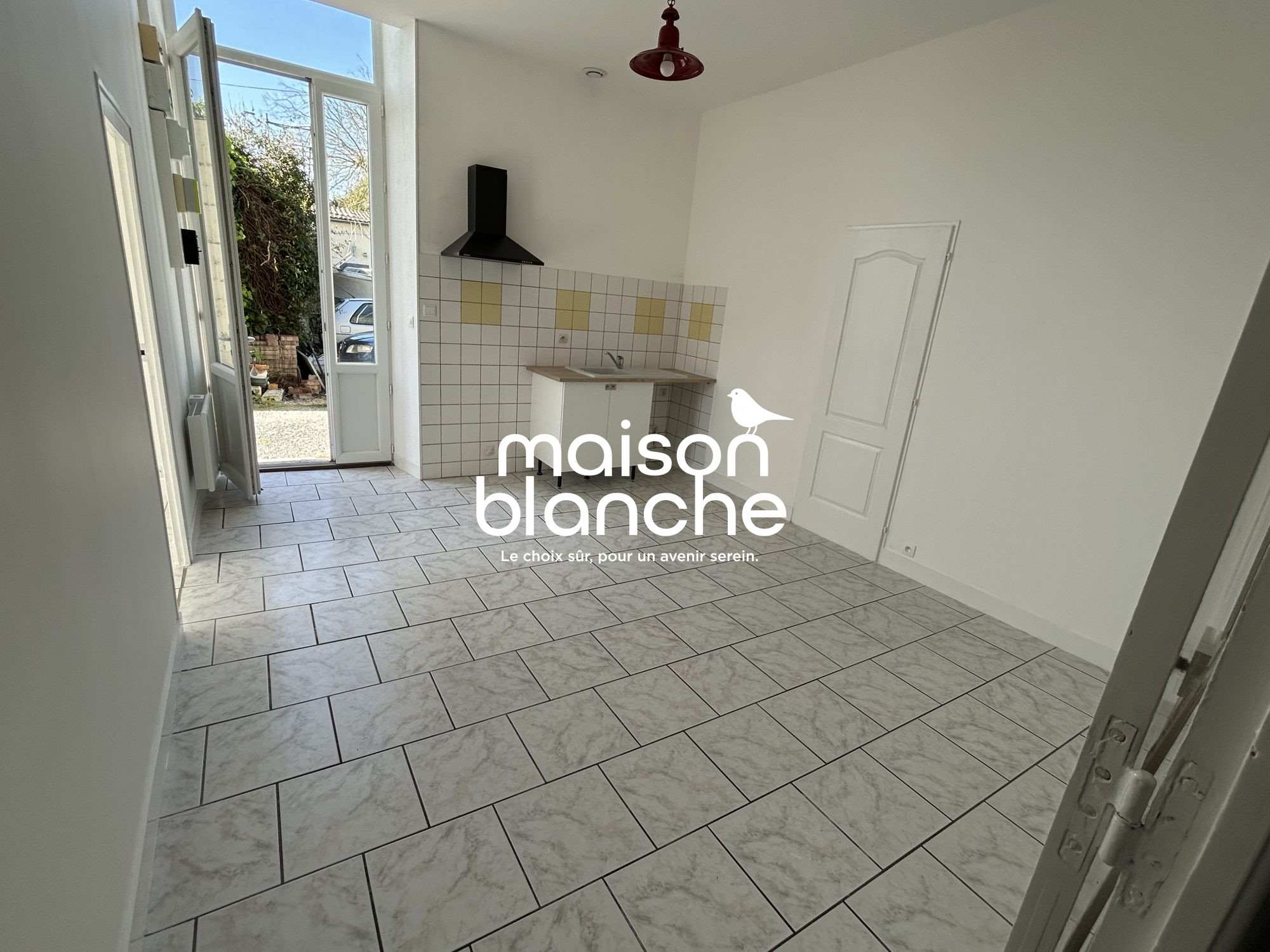 ...18M2 comprenant une entrée, un coin cuisine aménagée et équipée (plaque/hotte/frigo) ouverte sur...