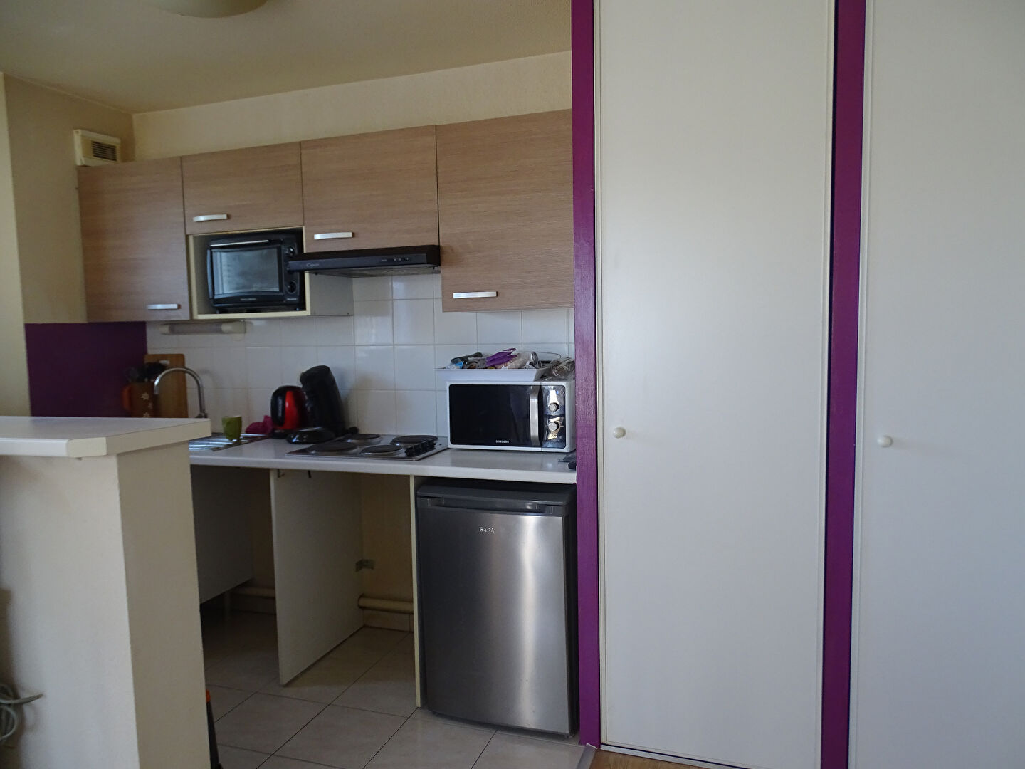 ...18M2 comprenant une entrée, un coin cuisine aménagée et équipée (plaque/hotte/frigo) ouverte sur...