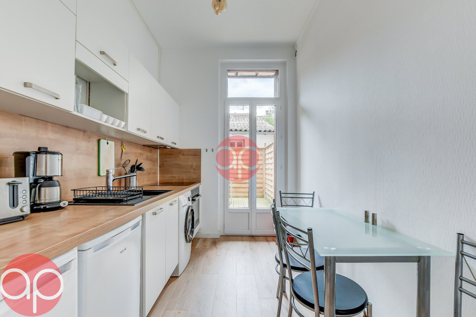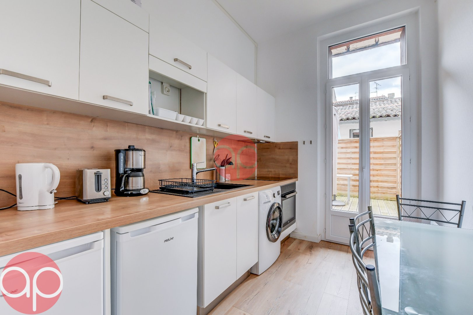 - Une cuisine meublée et équipée (plaque de cuisson, micro ondes, lav...