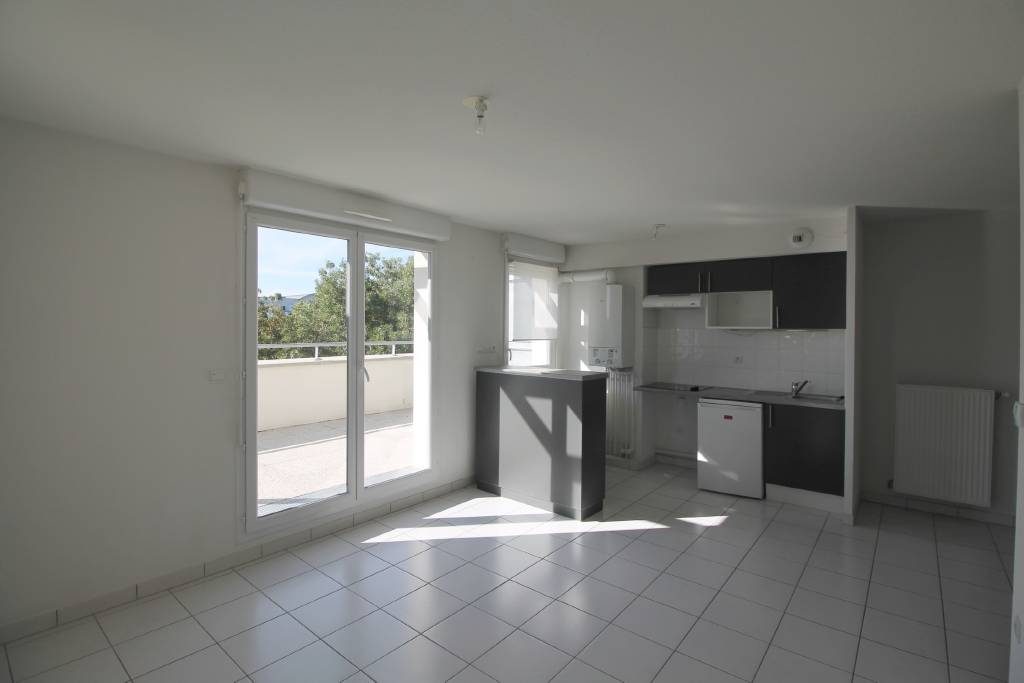 ...Séjour avec cuisine américaine équipée intégrée ouverts sur une grande terrasse de 14m² plein...