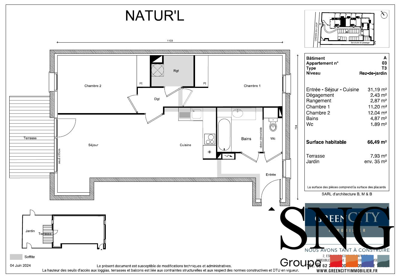 ...Vous disposerez d'une pièce à vivre lumineuse de près de 20m², d'une cuisine indépendante...