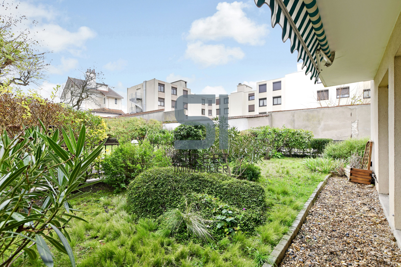 ... d'une copropriété arborée avec jardin commun, histoire de prendre l'air sans traverser la ville.