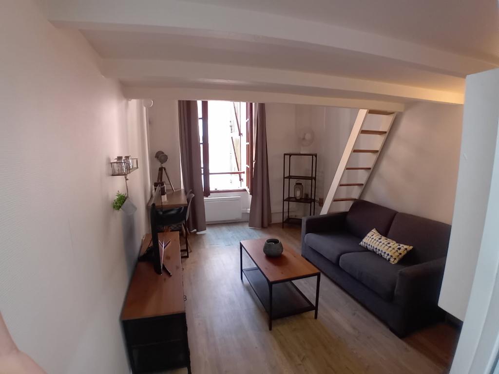 ...Mansardé : Un versant et en pente, sous les toits et fenêtre type velux Studio Équipé canapé...