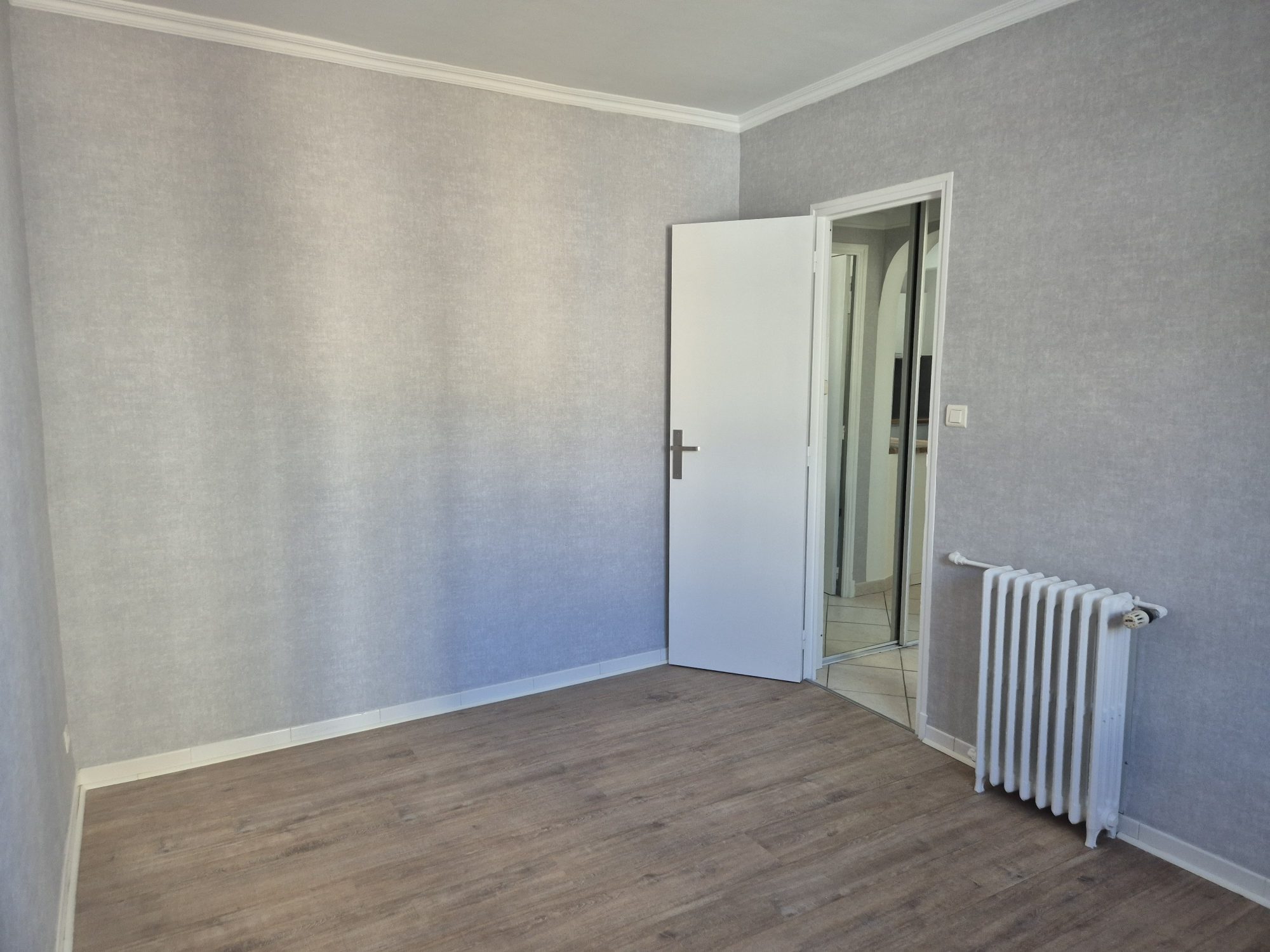 ...60 M² Une entrée sur pièce de vie, cuisine indépendante, deux chambres, une salle d'eau avec WC...