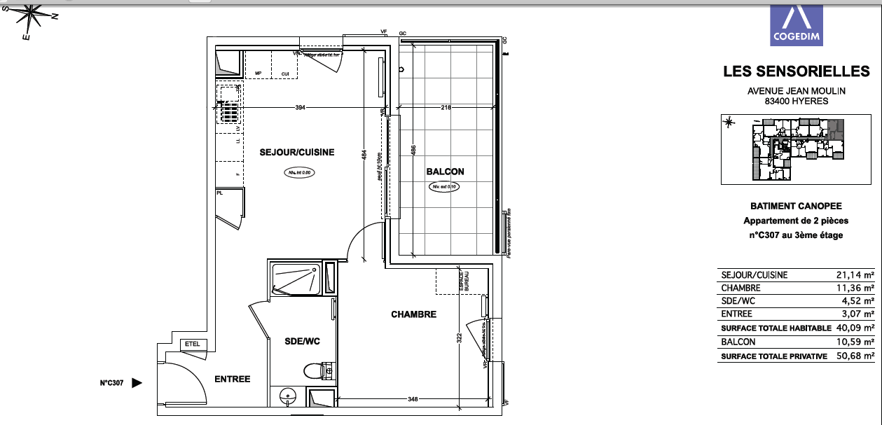 ...45m2 Situé au dernier étage de la résidence avec ascenseur il se compose d'un hall d'entrée...