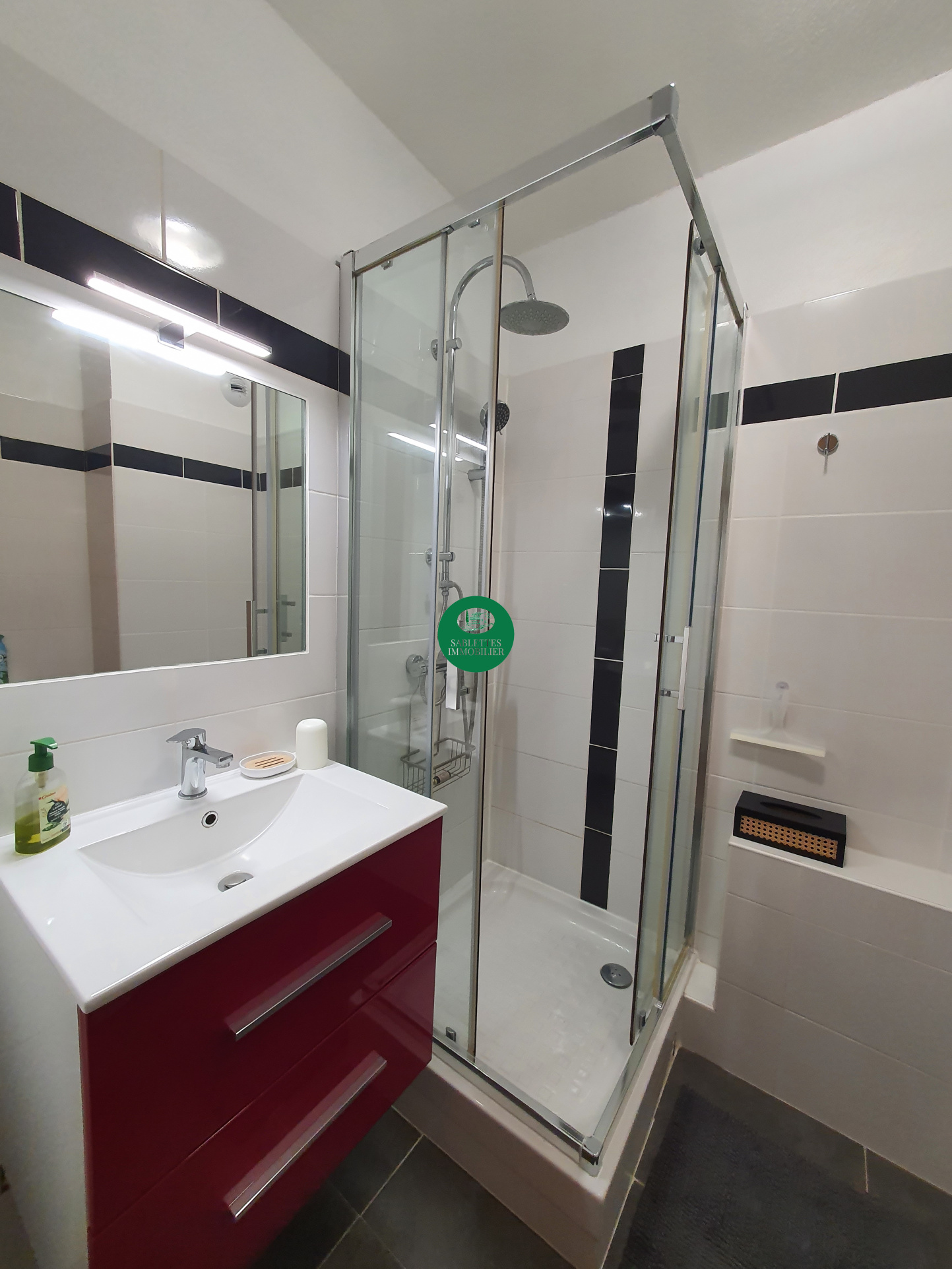...Comprenant : entrée, séjour avec cuisine américaine, salle de douche avec WC, une chambre,...