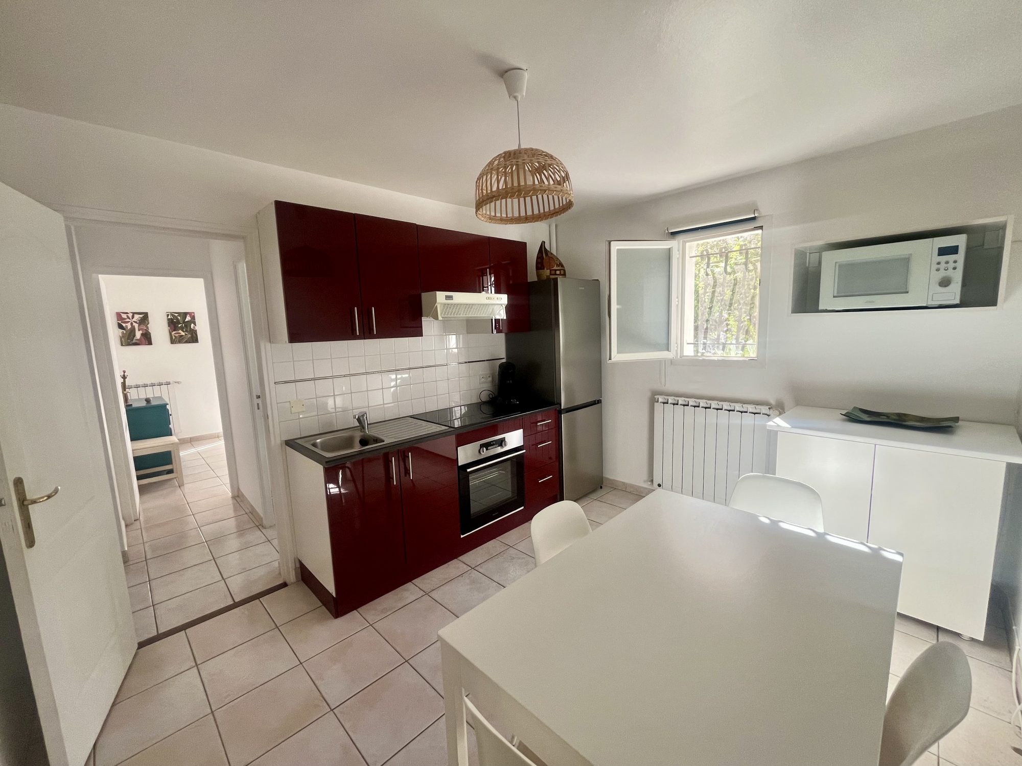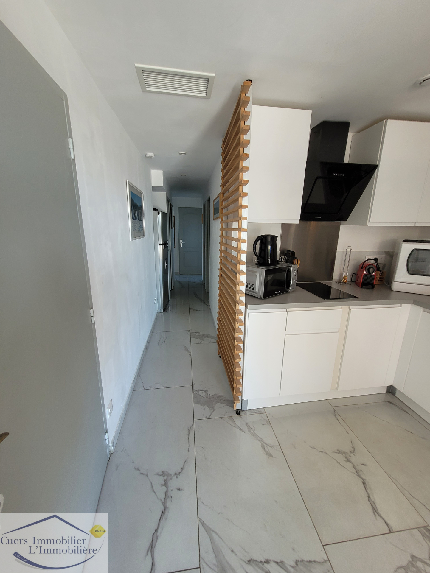 ... sur loggia avec vue mer ; dégagements et placards. CUISINE : Lave-vaisselle, plaques électriques, f...