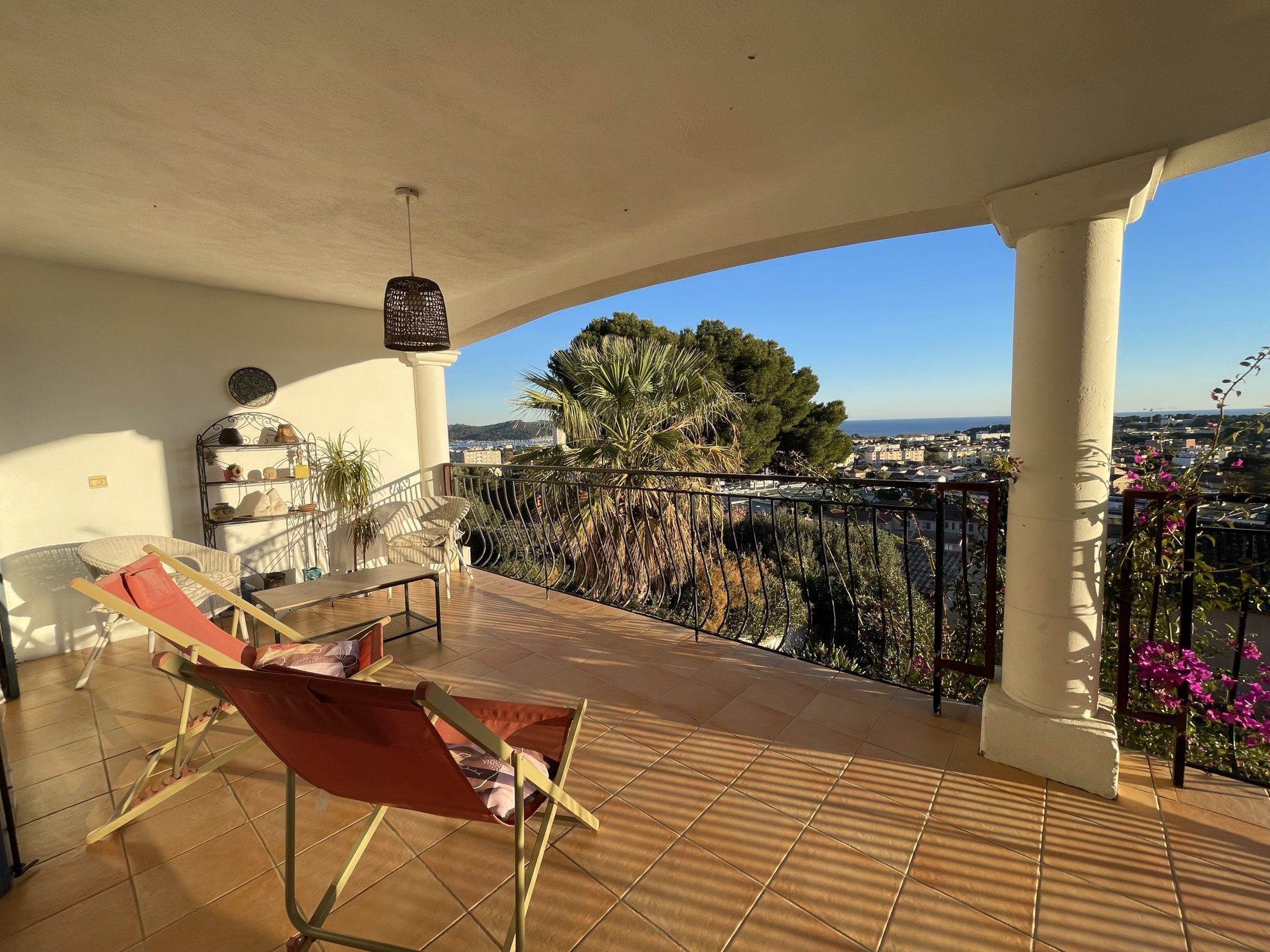 ... sur loggia avec vue mer.