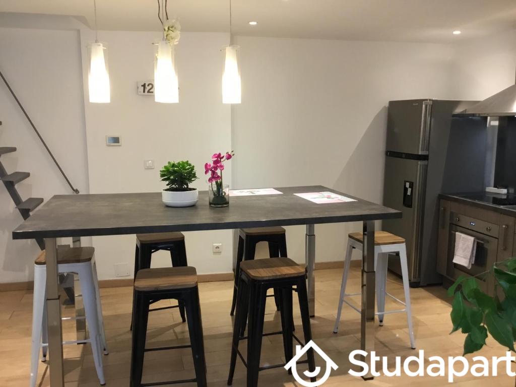 ... plafonds et une mezzanine, idéale pour optimiser l'espace.La cuisine aménagée et entièrement équipé...