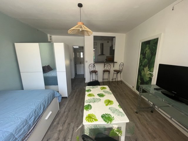 ... une entrée avec placard un séjour, un coin cuisine, une chambre, une salle de bain avec WC. Terrass...