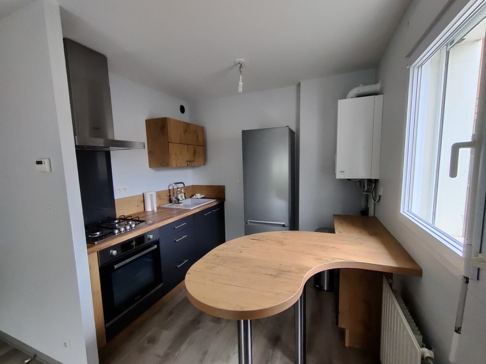 ...Dès l'entrée, on découvre un espace cuisine et salle à manger chaleureux, entièrement équipé et...