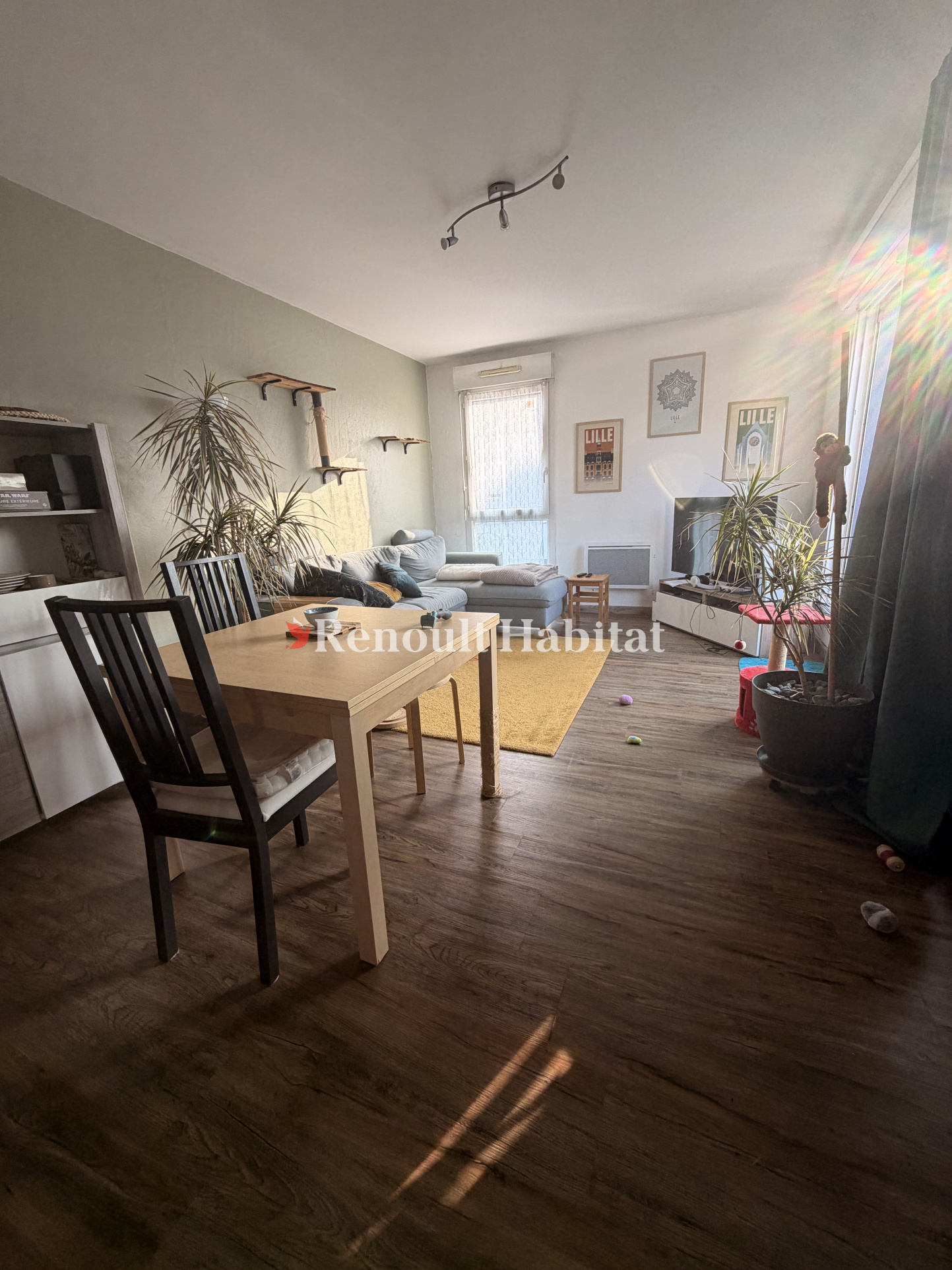 ...Séjour lumineux, cuisine meublée avec plaque et hotte, salle-de-bain, wc séparé, chambre avec...
