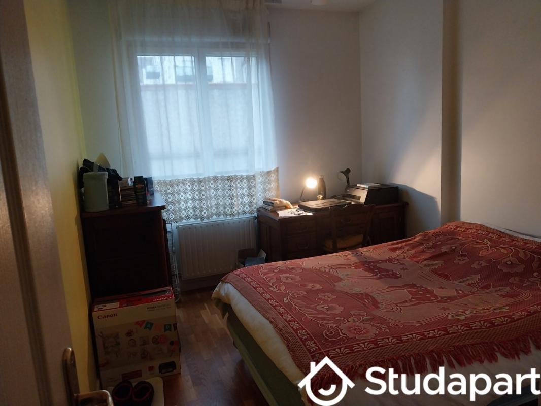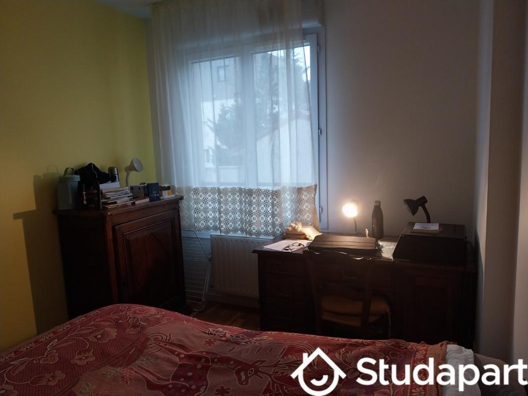 ...Chambre à louer meublée et lumineuse Lit 2 places marque Tediber Grande penderie avec grandes...