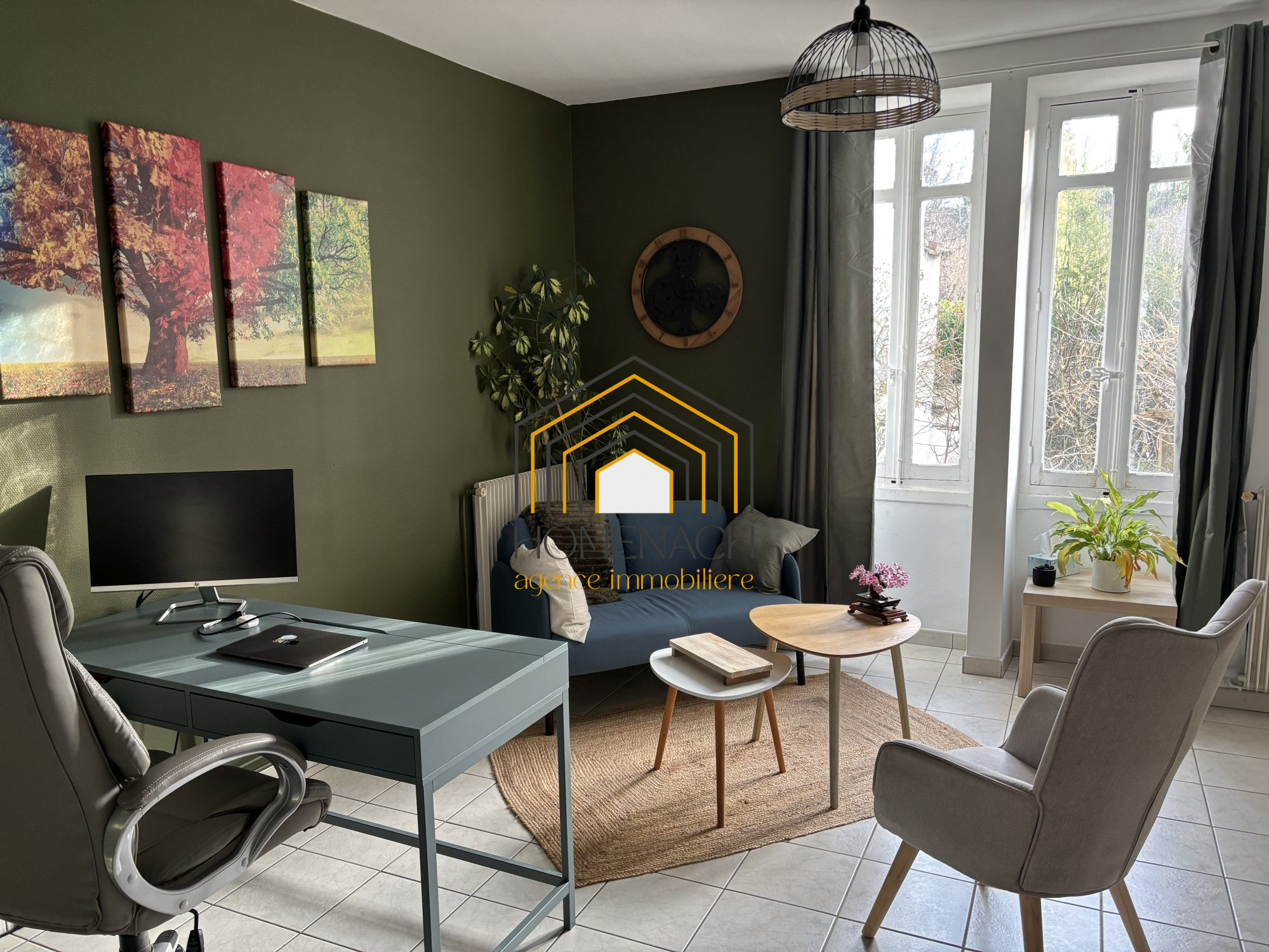...57m² en rez de chaussée est composé d'une entrée desservant :- Une pièce actuellement utilisée en...