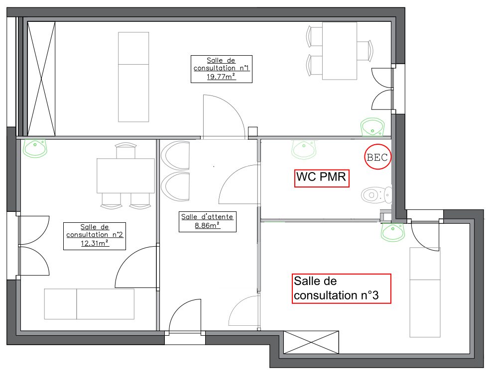 ...Elle est composée d'une salle d'attente, d'un grand bureau et des sanitaires...