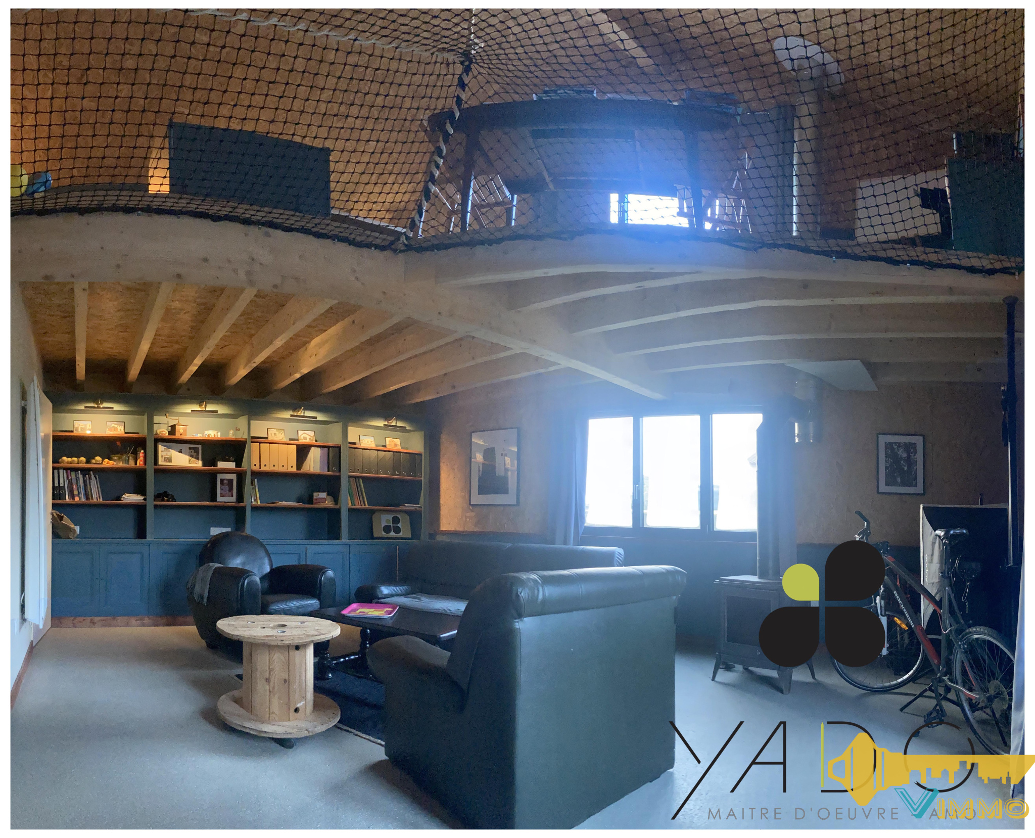 ...Espace RDC comprenant, accueil, salon, kitchenette, WC pour environ 37,40m2...