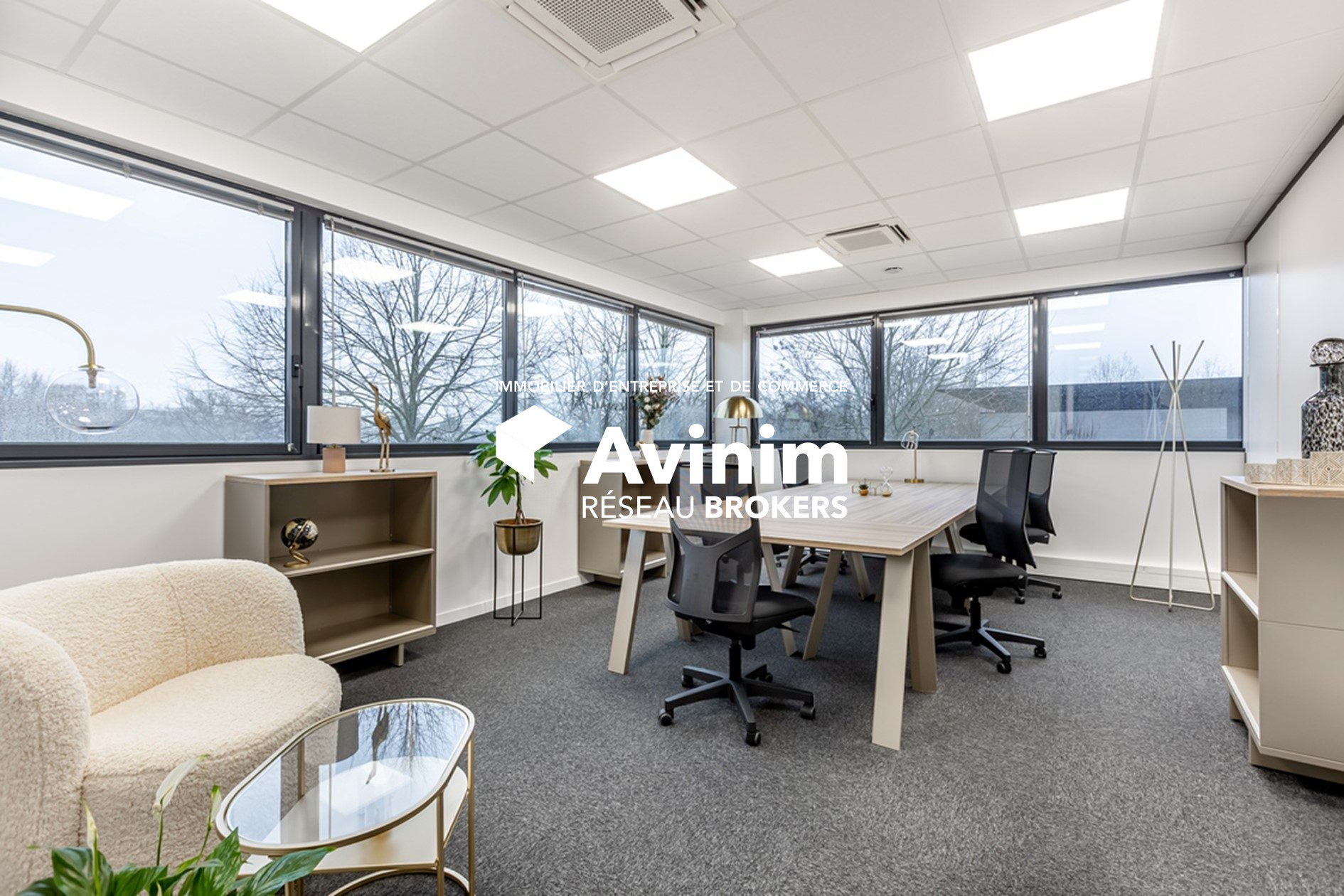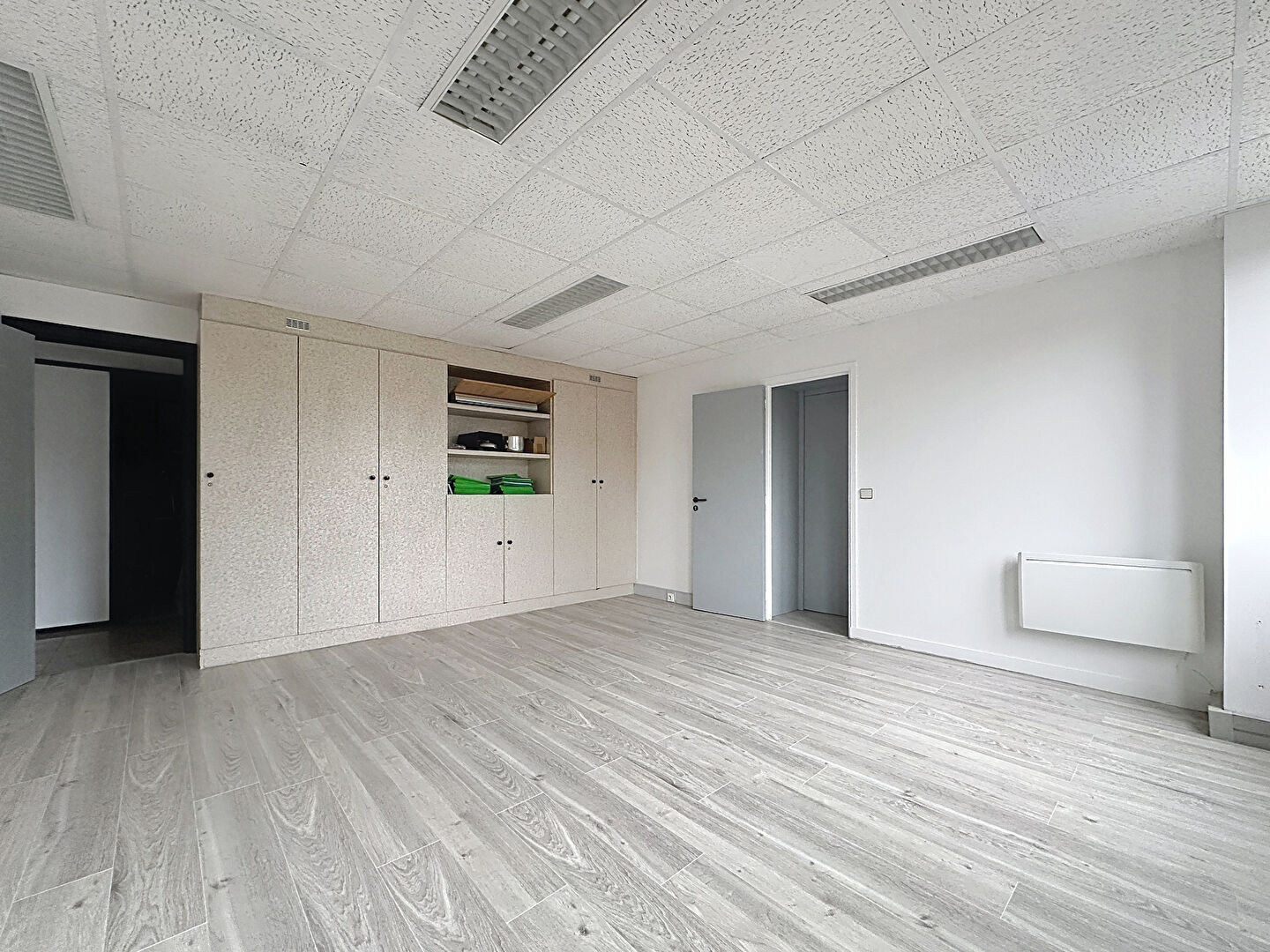 ...Moquette, faux plafond et câblages électriques dissimulés dans les plinthes...