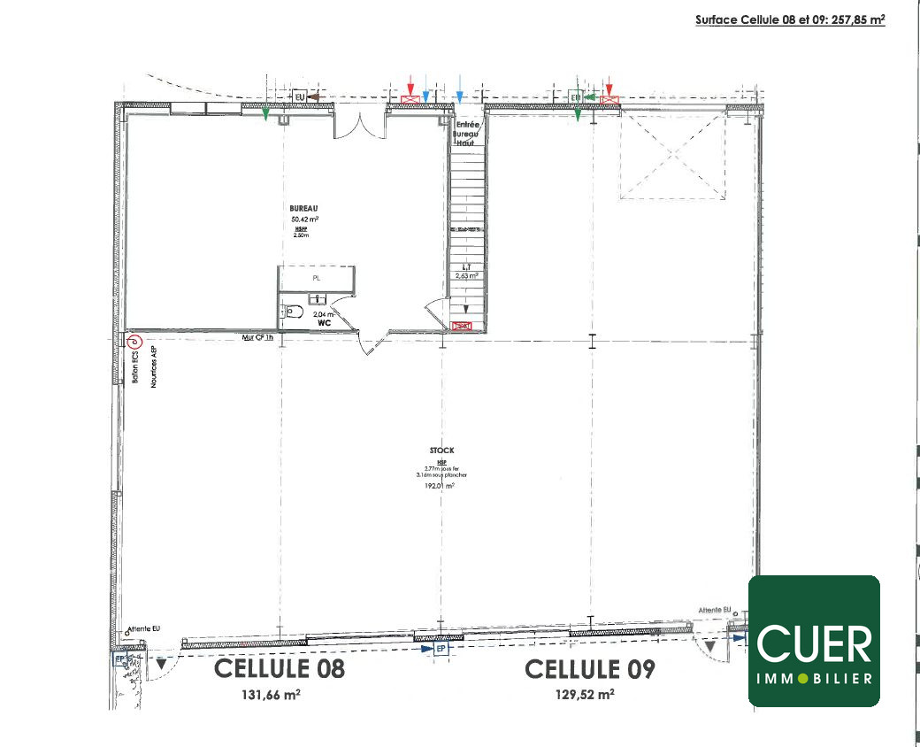 ...Configuration : -Bureau 30 m2 aménagé, -Atelier, stockage, 70 m² équipé d'une porte sectionnelle...