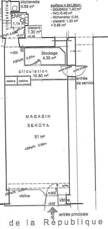 ...Magasin donnant sur la rue de la République par trois vitrines et une porte vitrée...