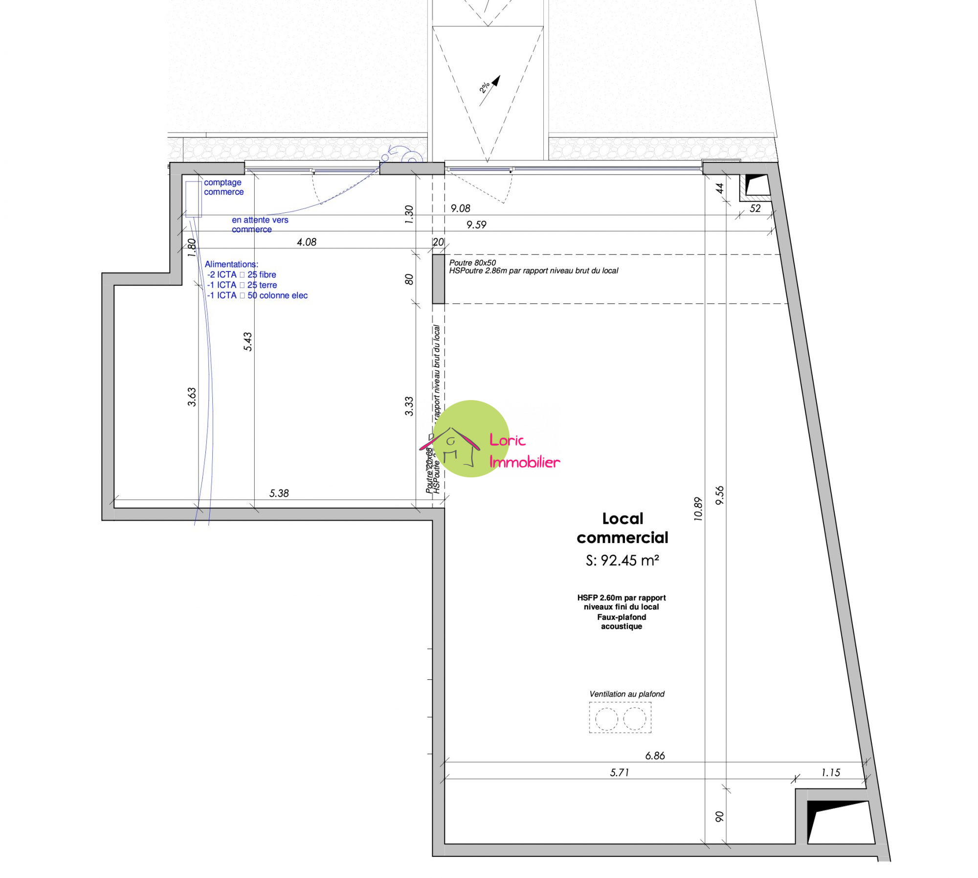 ...local commercial de 303m2 :Équipements inclus :- Arrivée d'eau et d'électricité- Espace...
