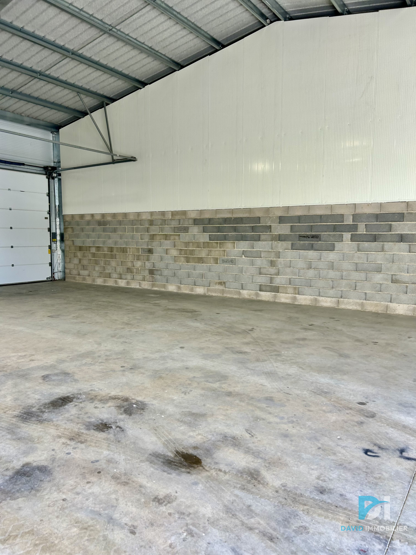 ... se compose d'un hangar de 96 m², 3 bureaux, deux wc et à l'étage une grande mezzanine de 33m² avec ...