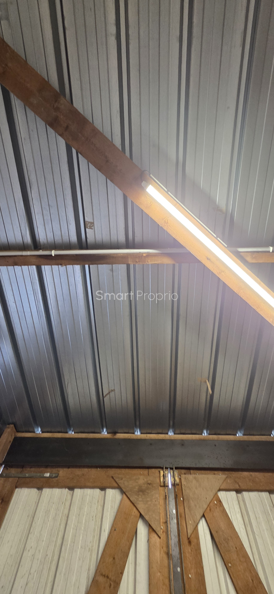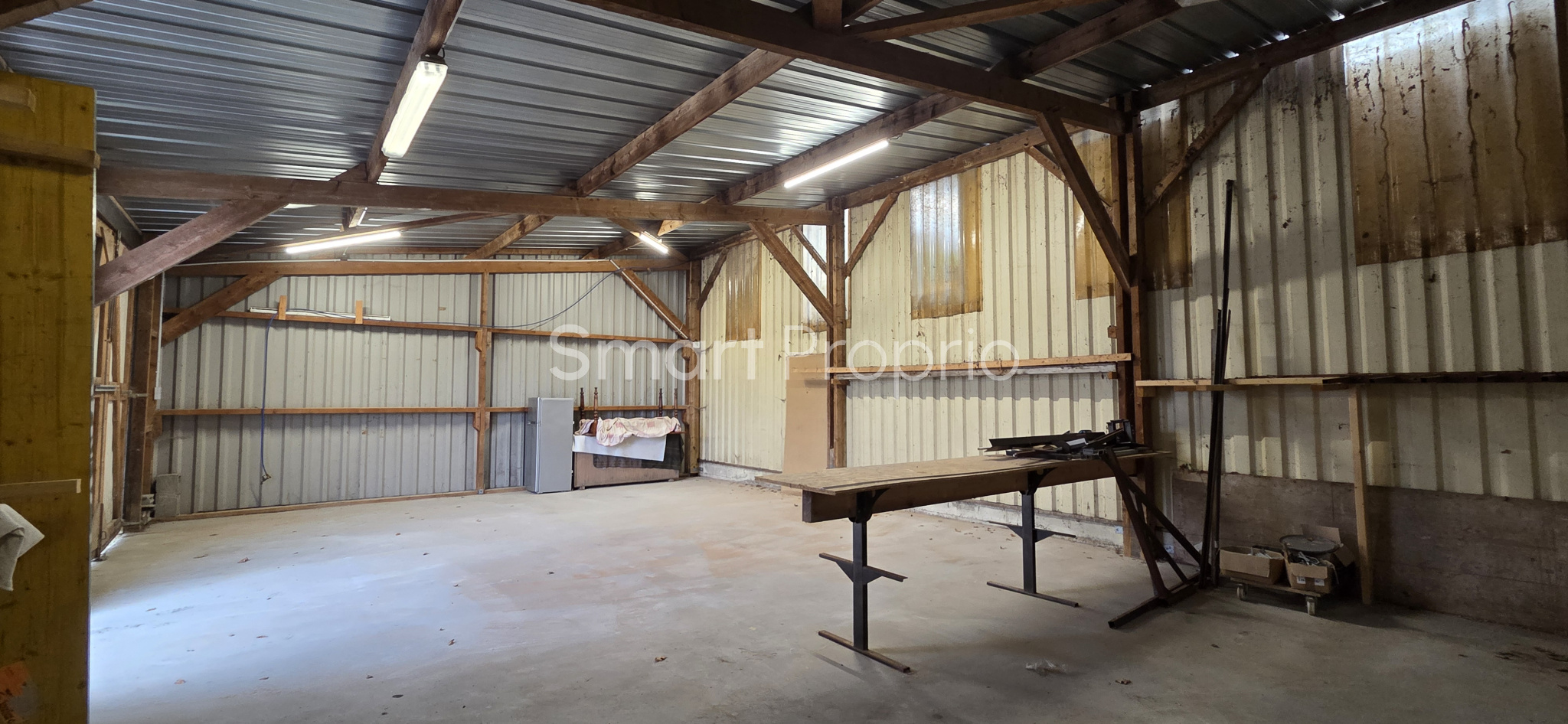 ...Structure bois, bardage métal, dalle béton, 3 portes sectionnelles (accès véhicules utilitaires),...