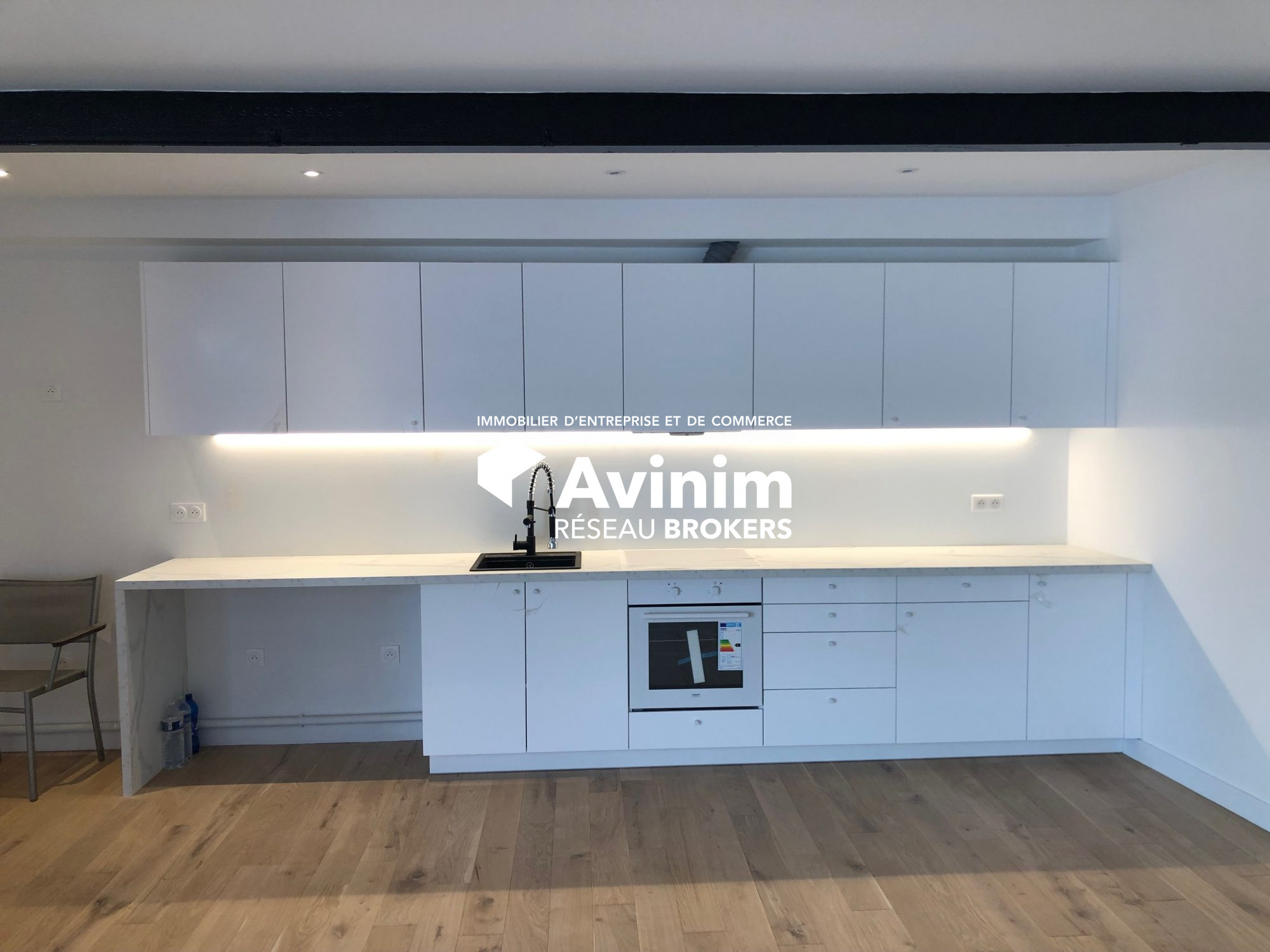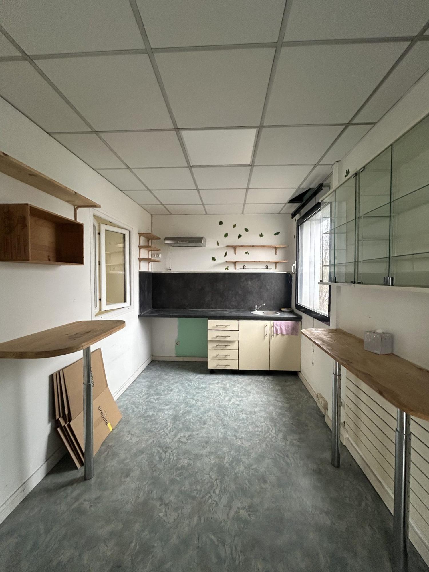...A l'étage : 2 bureaux, une cuisine meublée et semi équipée (réfrigérateur et hotte)...