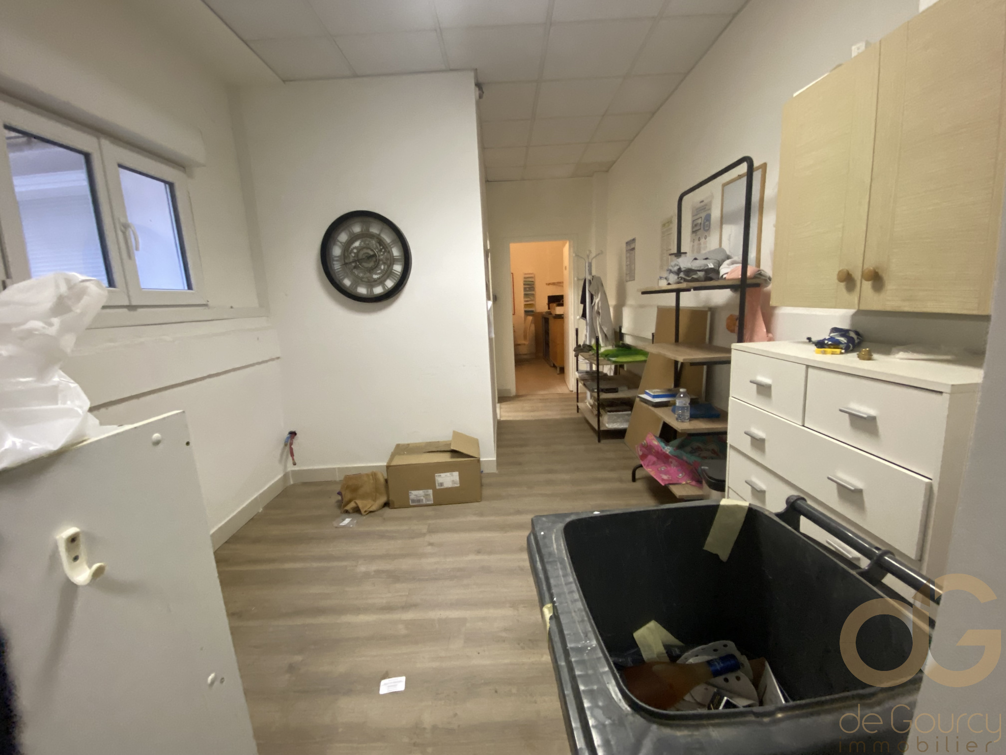 ...Cette surface comprend aussi un bureau d'environ 10 m2, une pièce d'accueil et sanitaire...