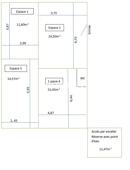 ...D'une surface de 94m² il se compose : - un espace de 83m2 - un local de stockage avec point d'eau...