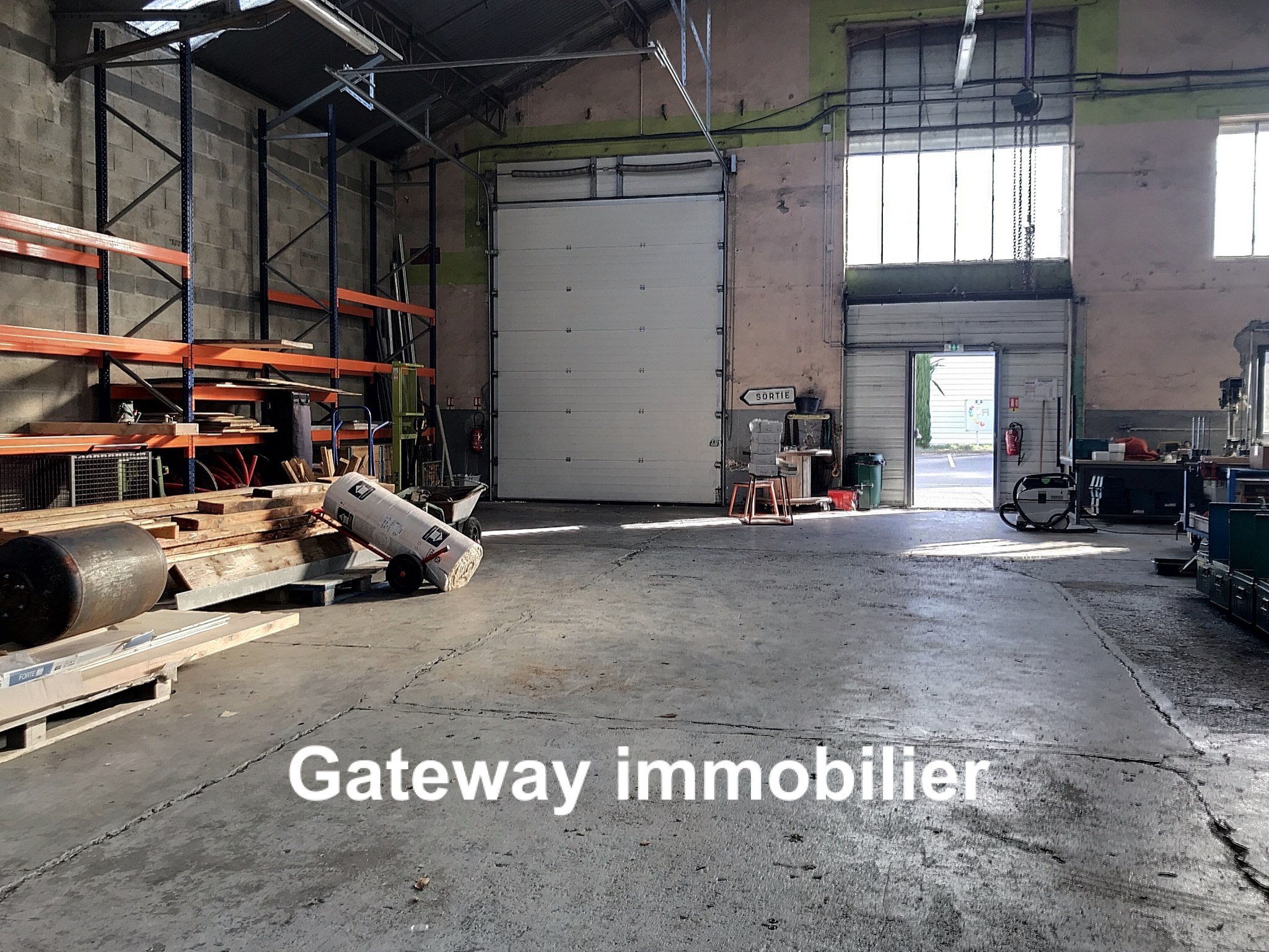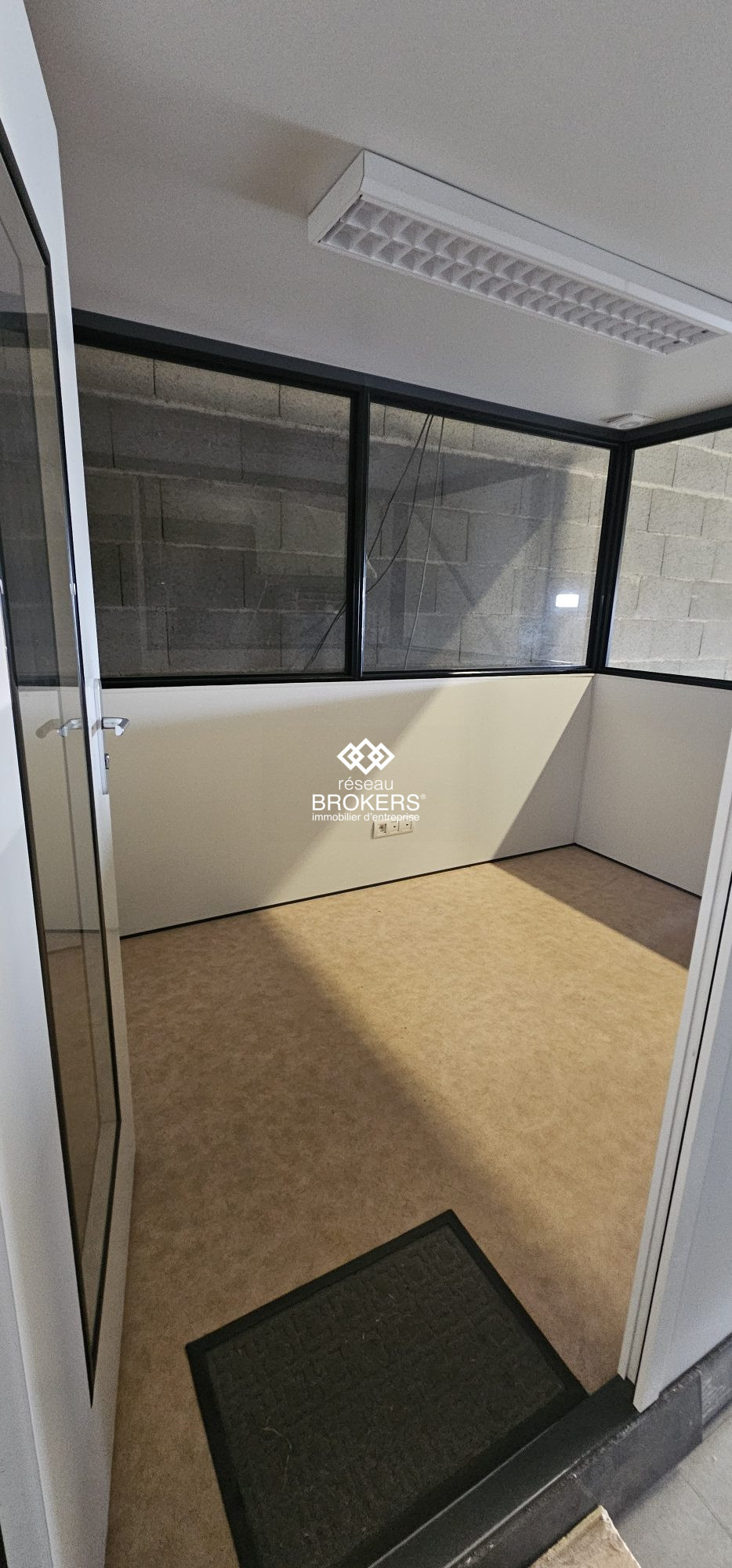 ...Entrepôt brut de mur et sol ciré, avec un petit bureau de 13m2 et attenant un local WC et lavabos...