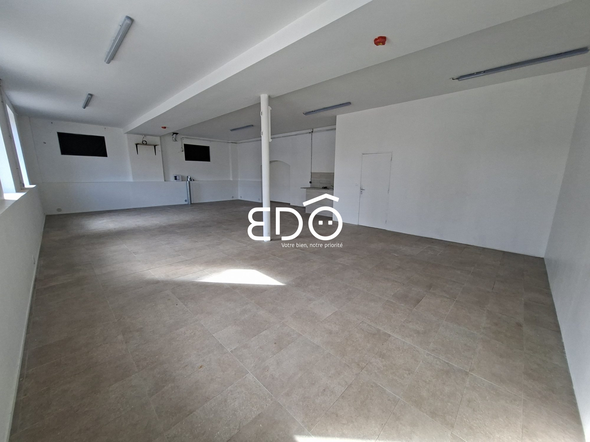 ...Local de 120m² comprenant un sas d'entrée avec porte de garage, un bureau de 15m², un WC et un...