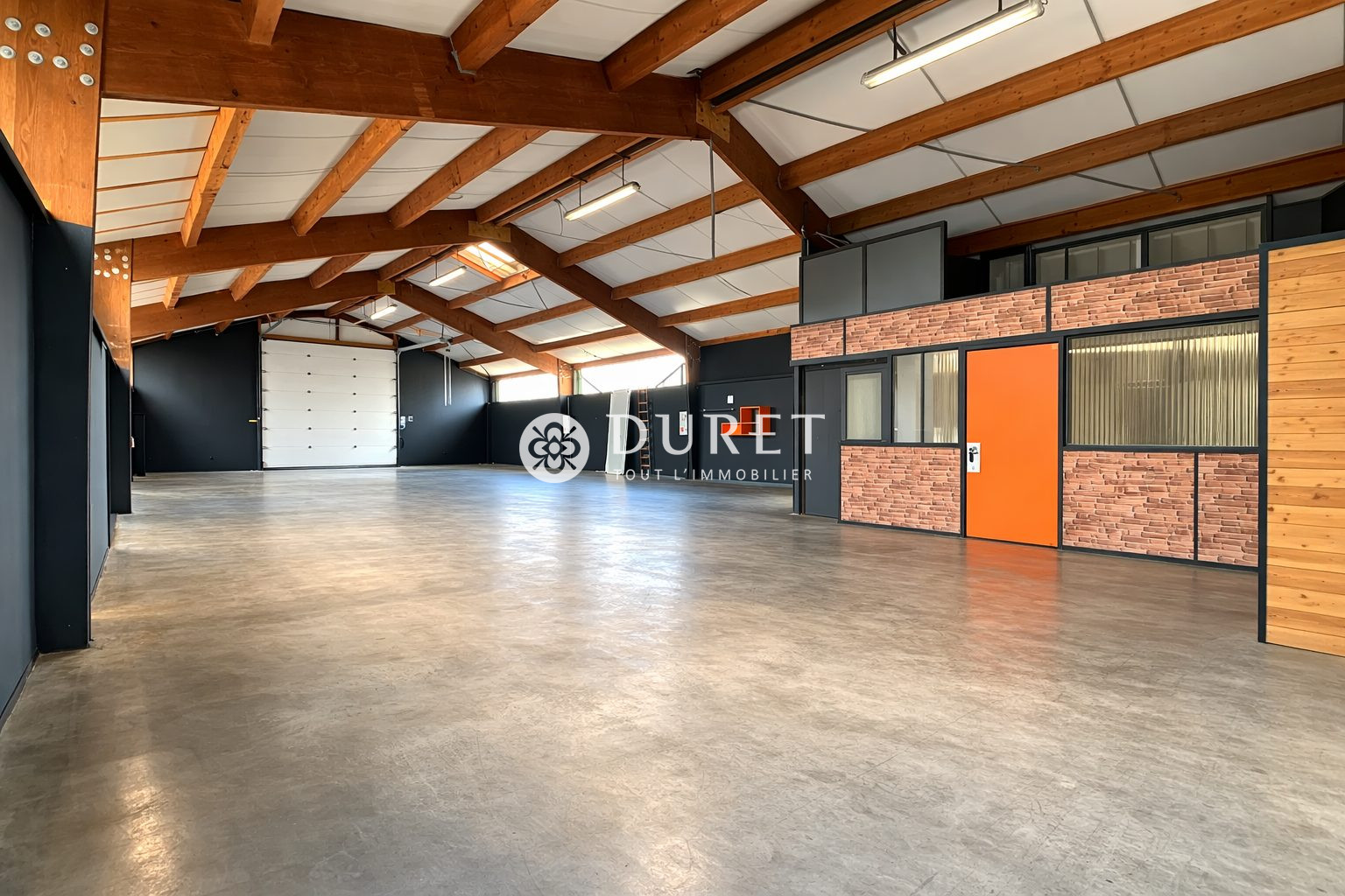 ... Un espace atelier de 182 m², isolé double peau, dalle béton, porte sectionnelle.