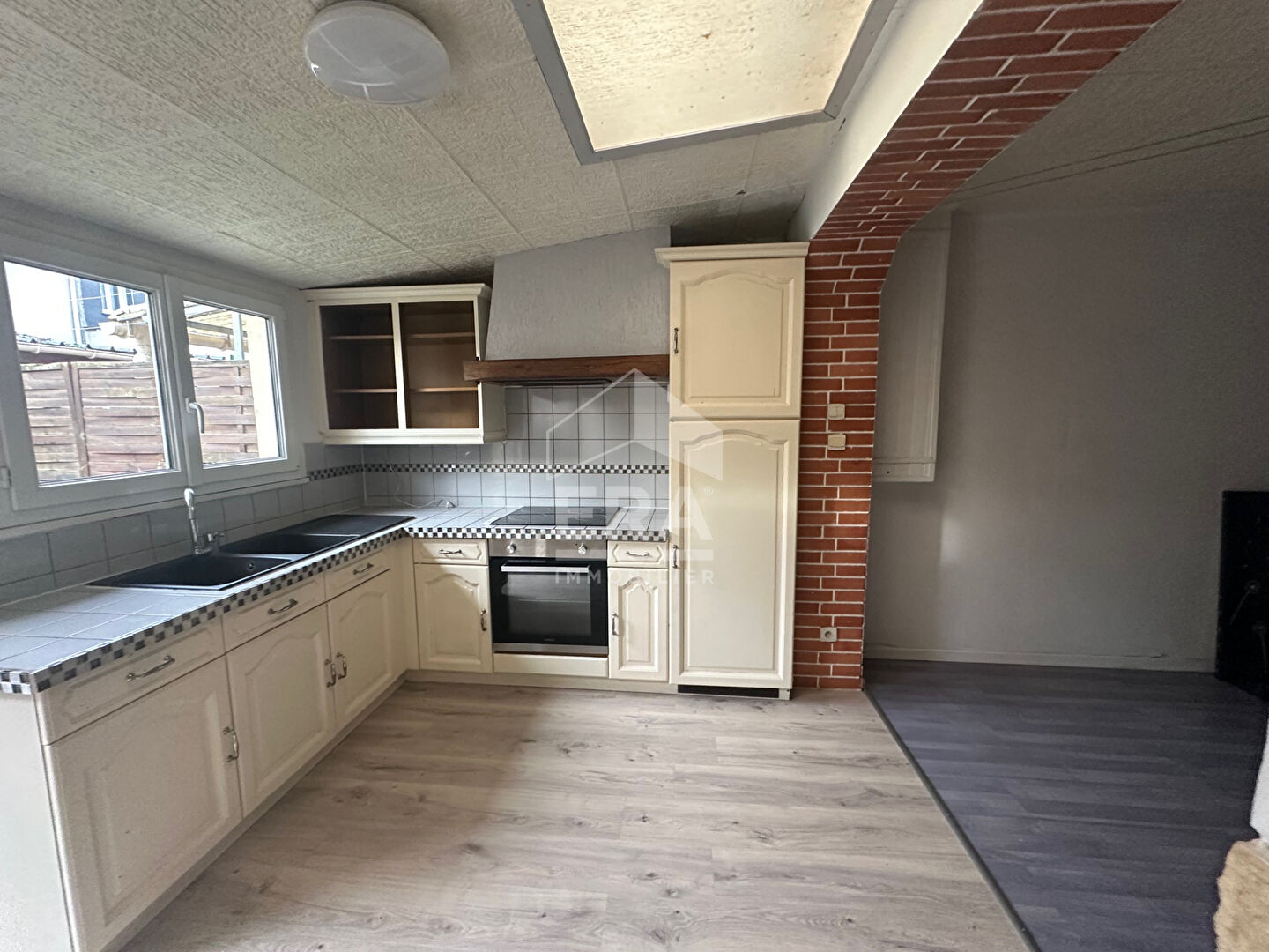 ...Au premier étage, une cuisine équipée ouverte sur séjour...