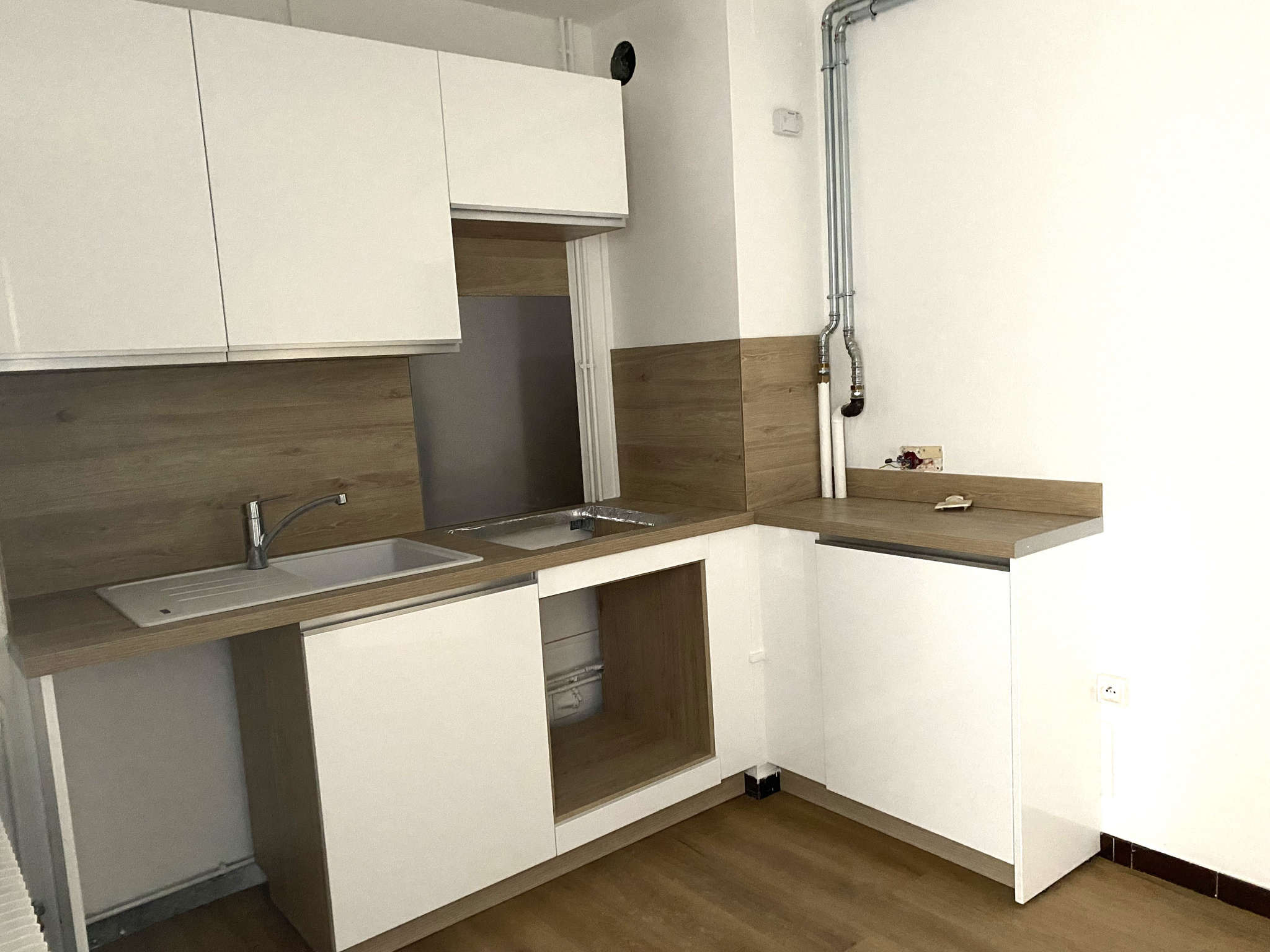 ...Terrain de 815 m² avec terrasse Sud, et une cour pour stationner les véhicules, terrain non clos...