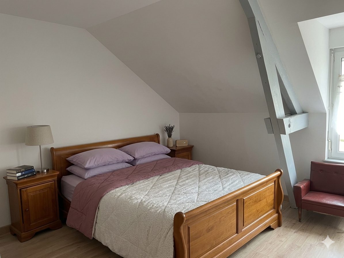 ...Au 1er étage: trois chambres et une salle de bains...
