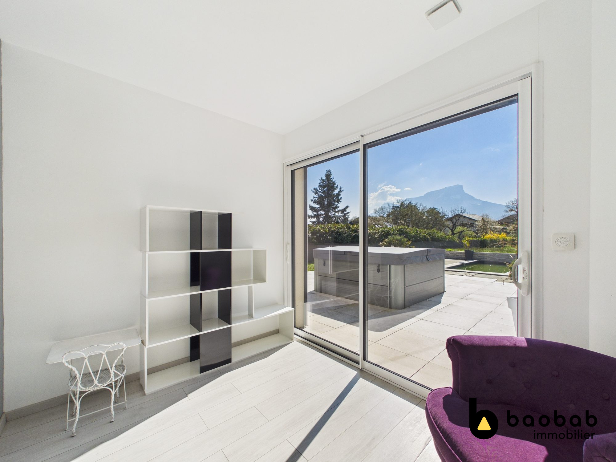 ...Maison moderne de plain-pied avec terrasse, jardin, piscine (sortie d'hivernage en cours) et spa,...