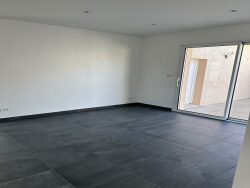 ...Elle est composée d'un salon / séjour ouvert sur la cuisine équipée...